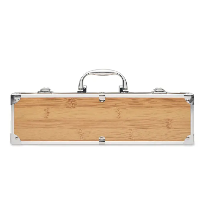 €14.04Set od 3 alata za roštilj od nehrđajućeg čelika nož, vilica i alat za oštrenje s drvenim drškama u aluminijskoj kutiji isporučuje se u aluminijskoj kutiji s izgledom drva