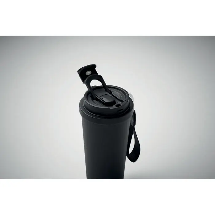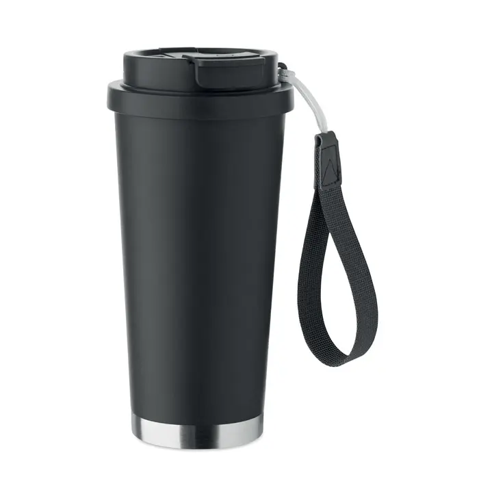€5.30Dvostruka stijenka od 90% recikliranog nehrđajućeg čelika (90% reciklirani nehrđajući čelik i 10% nehrđajući čelik) čaša s PP poklopcem (2-u-1 poklopac za ispijanje i slamku) i RPET trakom za nošenje nepropusna zapremnina: 500 ml