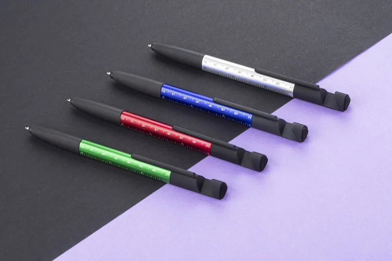 €1.06Praktični SET u malom obliku pokriva čak 8 funkcija: kemijska olovka, vrh za touchscreen, čistač zaslona, stalak za telefon, 2 odvijača, 2 ravnala (inč i centimetar). Izrađen je od plastike. Mehanizam za uvrtanje. Plava nadopuna tipa X20.
