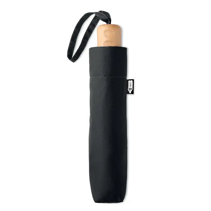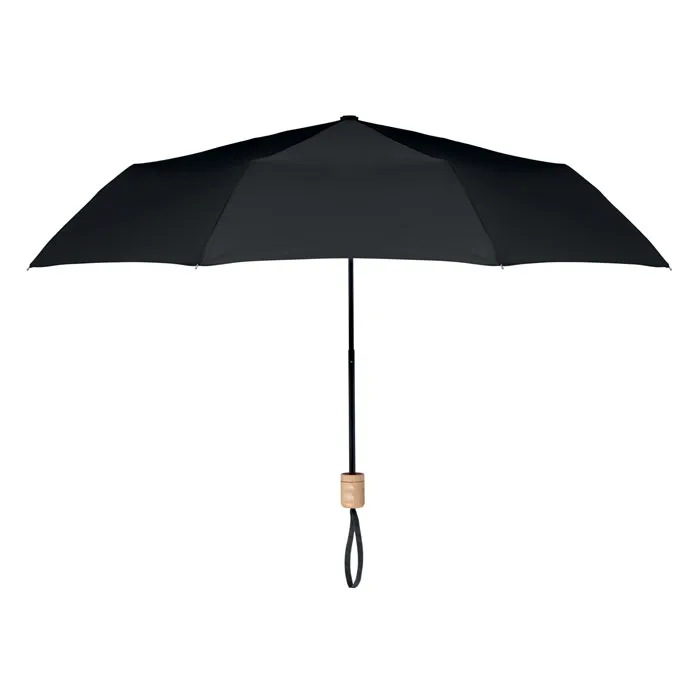 €6.98Sklopivi kišobran od 21 inča, 3 dijela s tkaninom od 190T RPET pongee, crno obložen okvir i rešetke s drvenom ručkom. Ručno otvaranje i zatvaranje. Torbica od istog materijala.