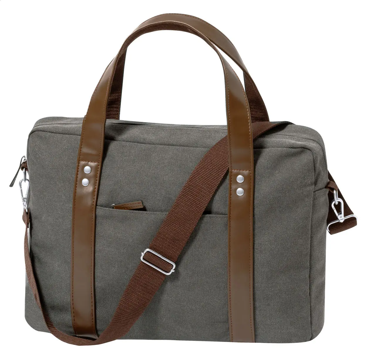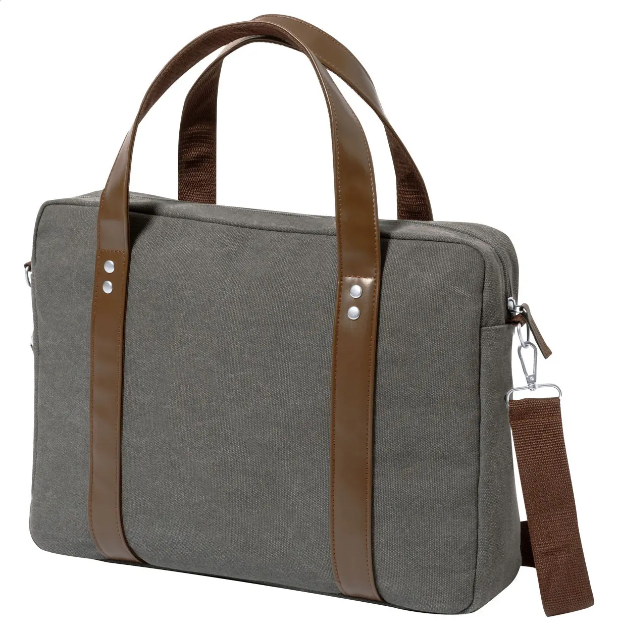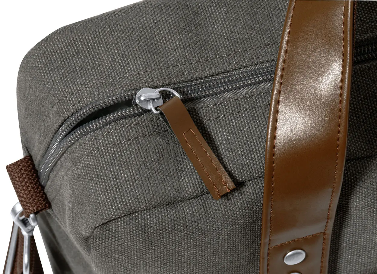 Torba za dokumente od platna s glavnim pretincem na patentni zatvarač i prednjim džepom, podstavljenim pretincem za laptop (15'') i tablet (10''), podesivi remen za nošenje preko ramena, detalji i ručke od PU kože