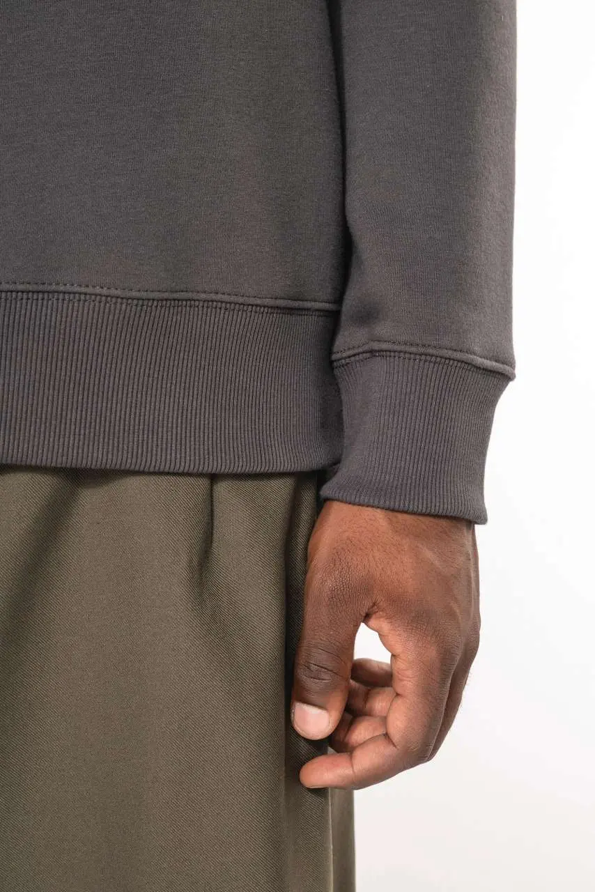 €14.9980% češljani pamuk/20% poliester, runo s niskim skupljanjem, silikonizirano, kontrastna traka na vratu (Heather Grey kontrast za sve boje osim Oxford Grey gdje je traka Middle Grey), rebrasti ovratnik s ukrasnim šavom u obliku križa, rebraste manšete i pojas, certificirano STANDARD 100 by OEKO-TEX® N° CQ 1007/8, IFTH