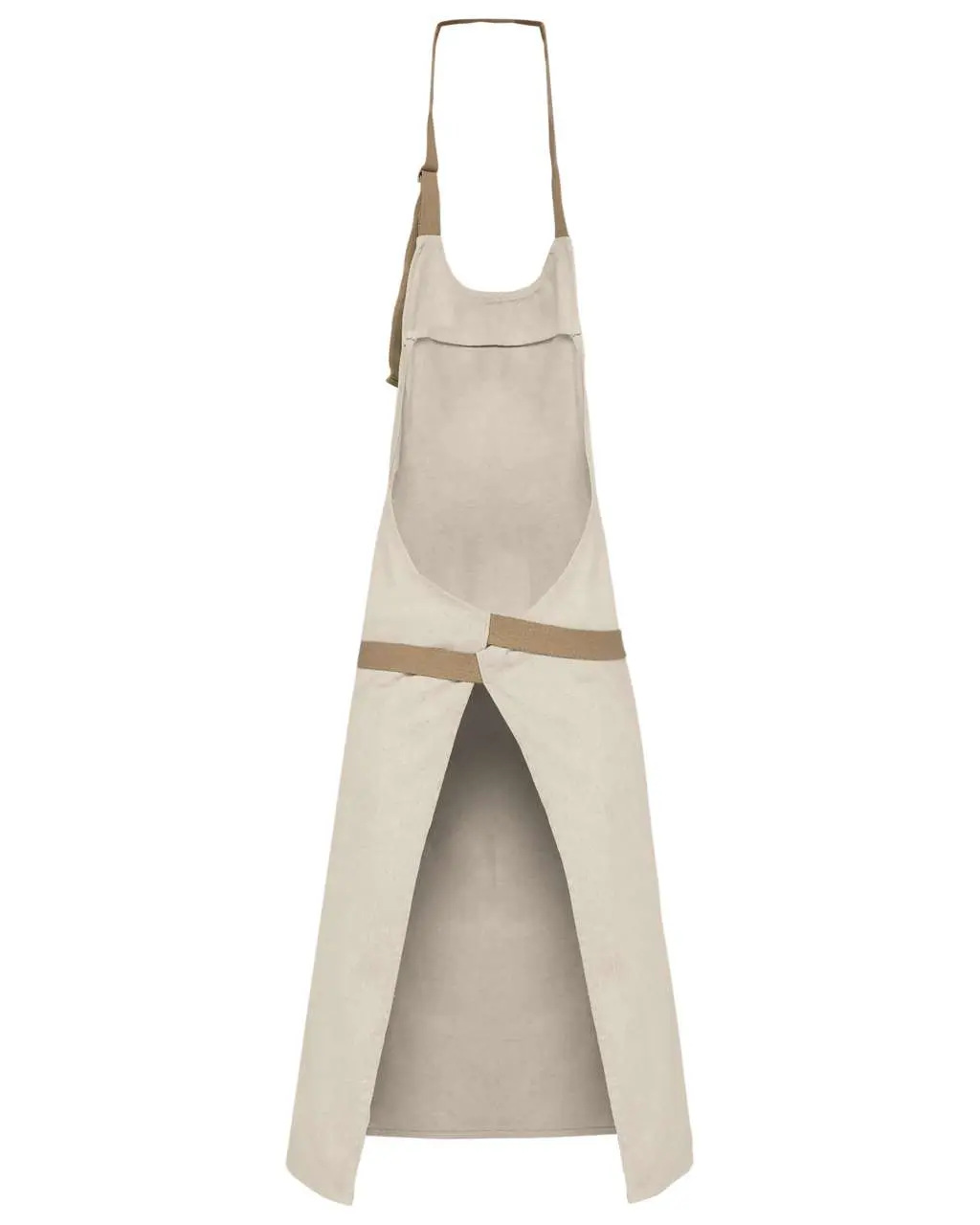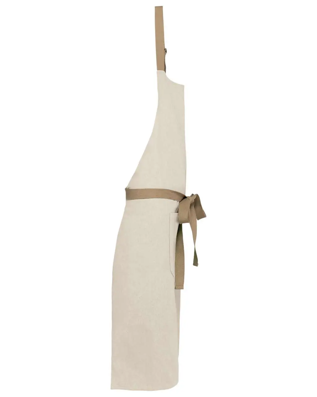 Tkanina od recikliranog pamuka (pre-consumer) i poliestera (post-consumer), 73% pamuk/27% poliester za boje Hemp i Rosewood, 73% pamuk/25% poliester/2% ostala vlakna za boje Carbon i Ecume, 65% pamuk/35% poliester za boju Meadow Green, pranje na 60°C, metalna kopča na vratu za podešavanje duljine pregače, veliki prednji džep s dva odjeljka, vezica za struk i vrat od recikliranog pamuka u boji Hemp za sve boje, dimenzije: visina 90 cm x širina 76 cm, džep: visina 20 cm x širina 31,5 cm, zbog recikliranog materijala moguća su manja odstupanja u boji
