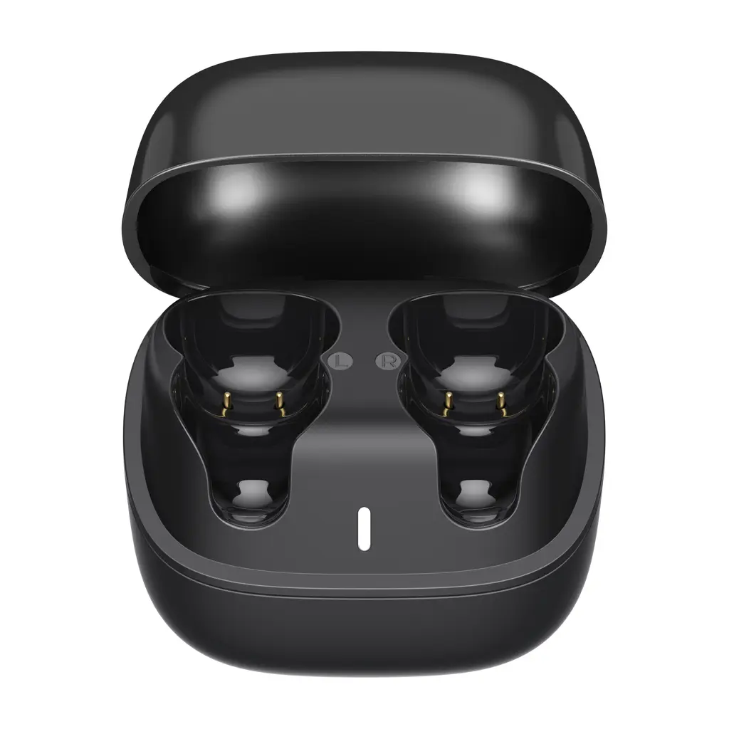 Bežične slušalice koje se pričvršćuju na uho, ne ulaze u ušni kanal, ENC za jasne pozive, upravljanje dodirom, trajanje baterije 6,5 sati za slušalicu i 20 sati za kutiju, IPX4 vodootpornost, izrađene od recikliranog ABS-a s RCS certifikatom, ukupni udio recikliranog materijala 15% prema ukupnoj masi proizvoda, bez PVC-a, pakirane u ambalaži s manje plastike