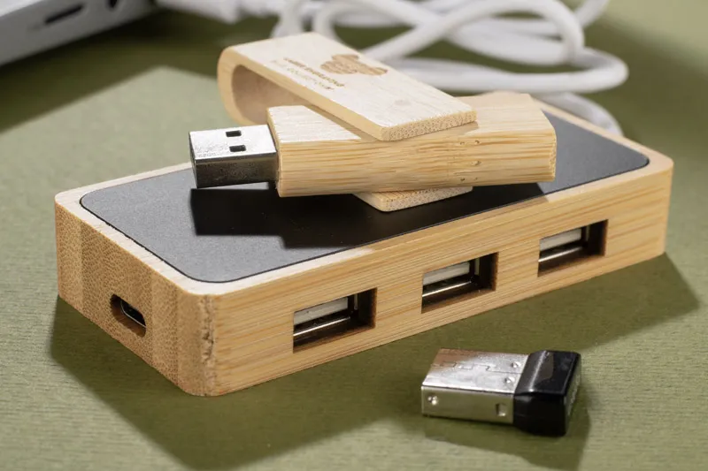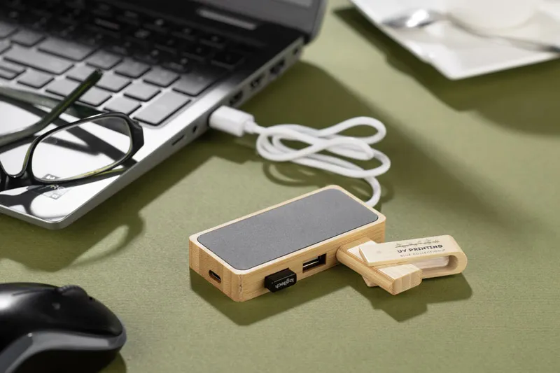 €15.47NATRO USB hub u kućištu od bambusa s 3 USB priključka i jednim USB-C ulazom za istovremeno povezivanje više uređaja