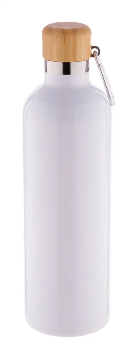 €15.36Dvostruko zidana boca od nehrđajućeg čelika s vakuumskom izolacijom, bambusovim poklopcem i karabinerom, 500 ml.