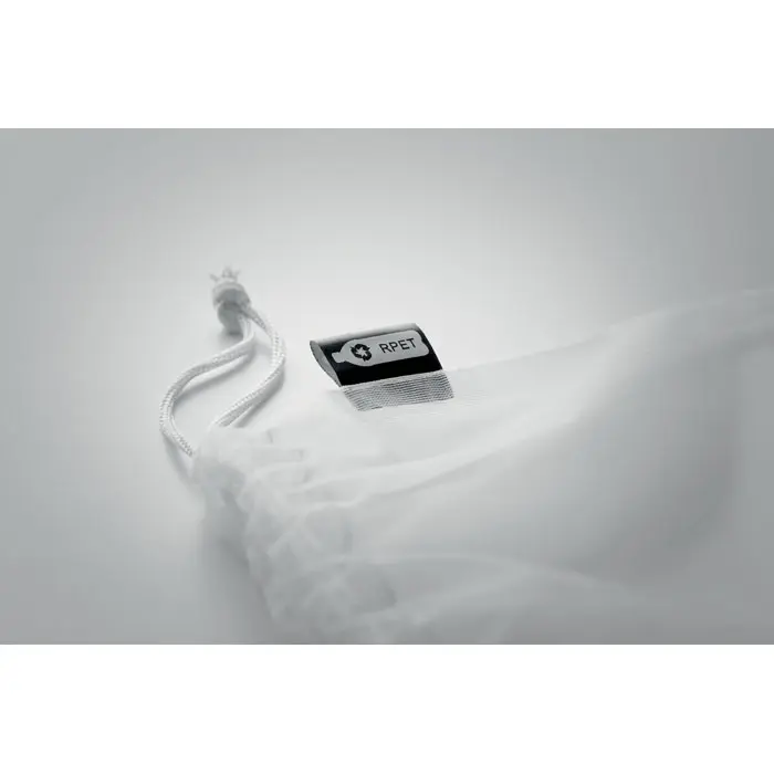 Vrećica za hranu od mrežastog RPET-a s prednjim džepom i bijelom PP vezicom na vrhu