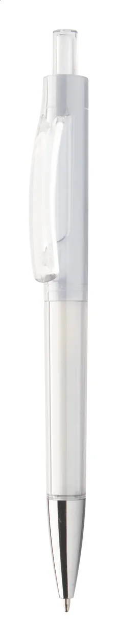 Prozirna plastična kemijska olovka s kromiranim vrhom. S plavim punjenjem.