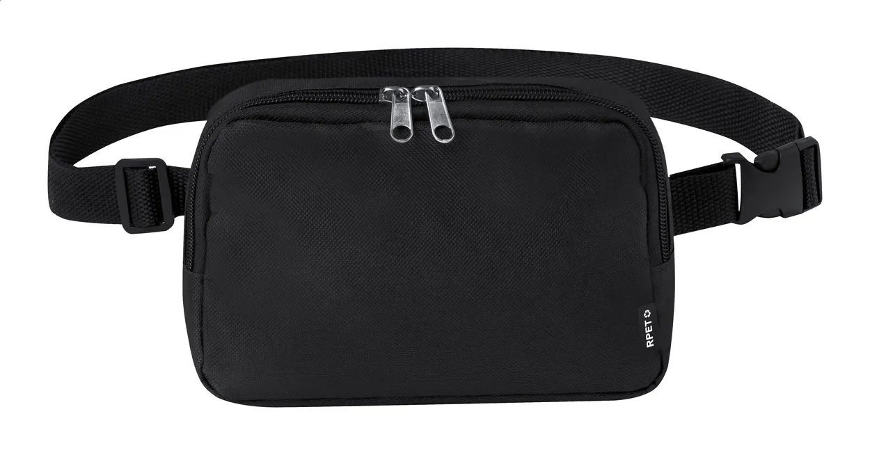 RPET torbica za nošenje oko struka s glavnim pretincem na patentni zatvarač i podesivom trakom izrađena od 600D RPET poliestera s prepoznatljivom RPET etiketom