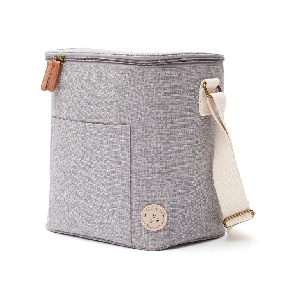 Termo torba od melange tkanine s PU detaljima, manjih dimenzija za lakše nošenje u ruci ili preko ramena, podstava od PEVA materijala za jednostavno čišćenje