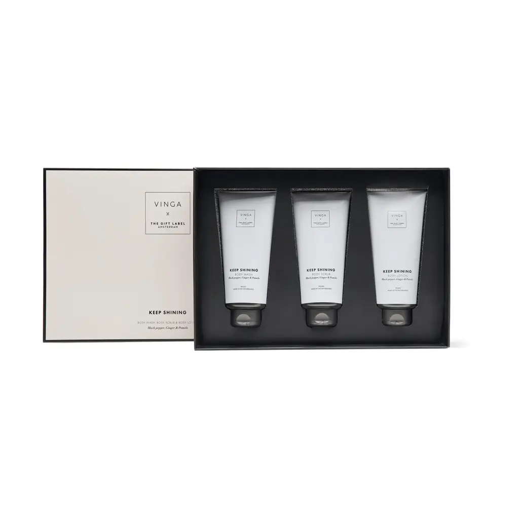 €70.80Set za tuširanje sadrži tri tube od 200 ml: gel za tuširanje piling za tijelo i losion za tijelo s aromom crnog papra đumbira i pomela pakirano u poklon kutiji u krem bijeloj i crnoj boji