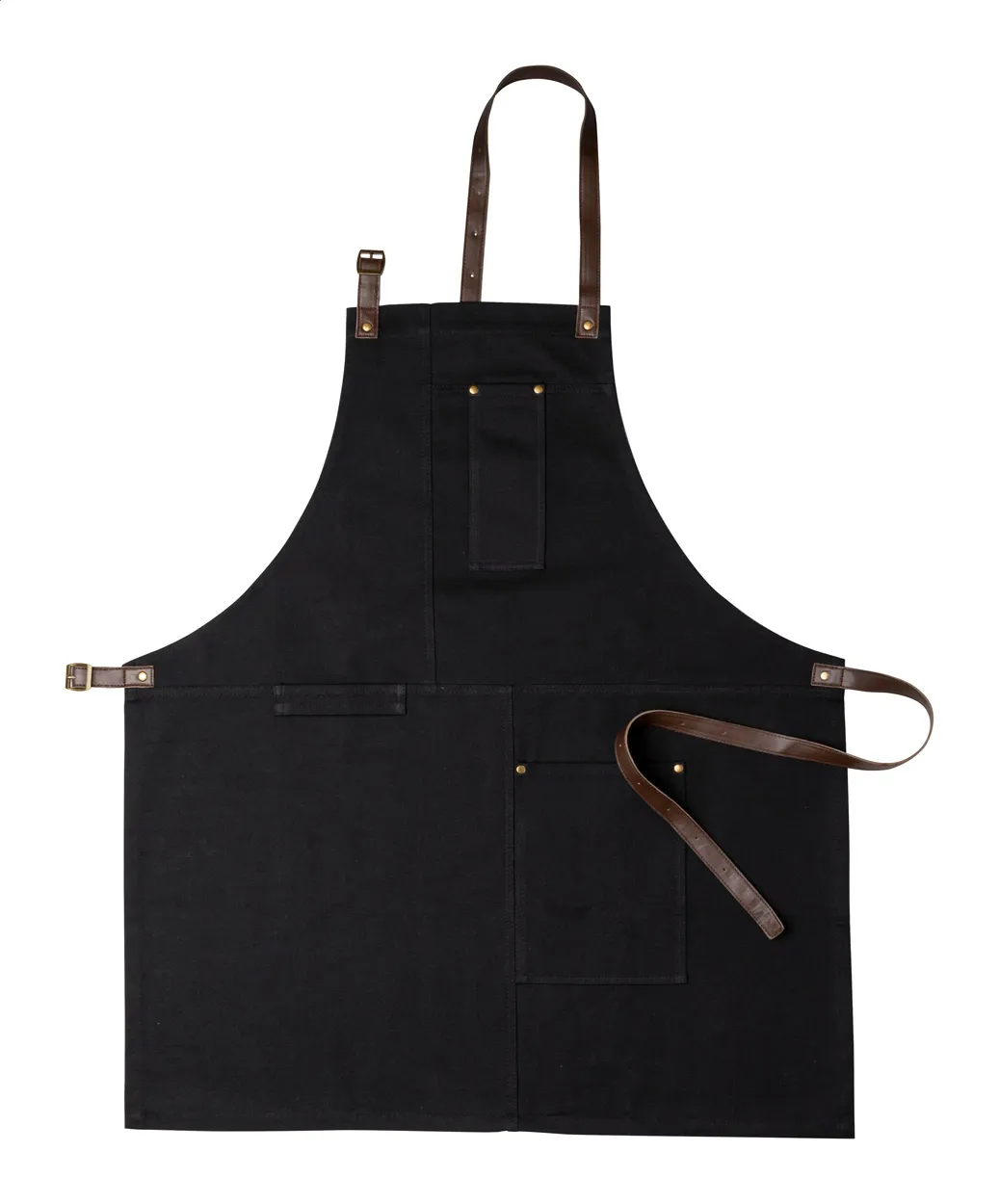 Pamučna pregača s prednjim džepovima i podesivim remenima od PU kože, 340 g/m².