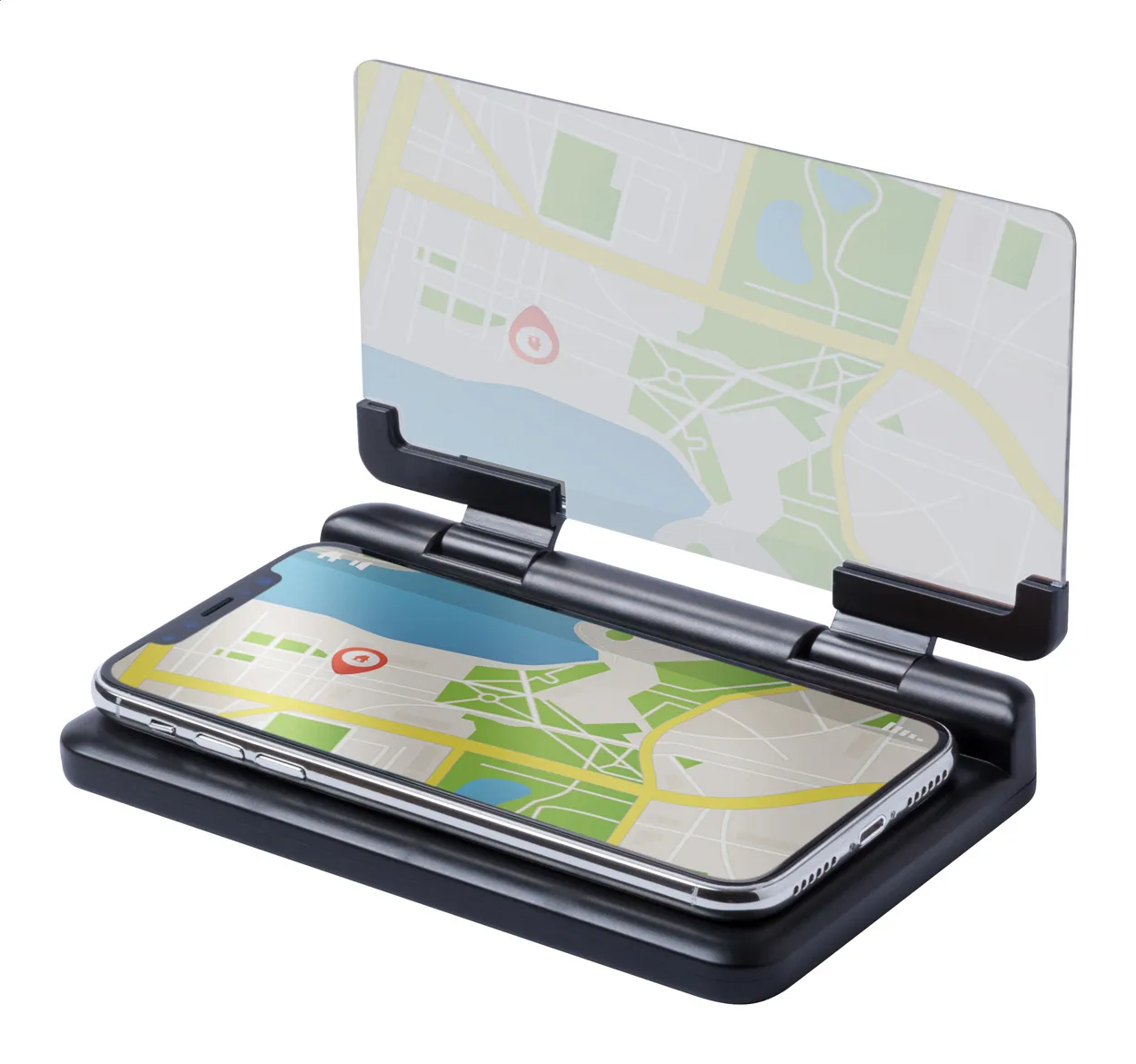 Držač za mobilni uređaj na armaturi izrađen od plastike s ogledalom za prikaz informacija na vjetrobranskom staklu i ljepljivom površinom.