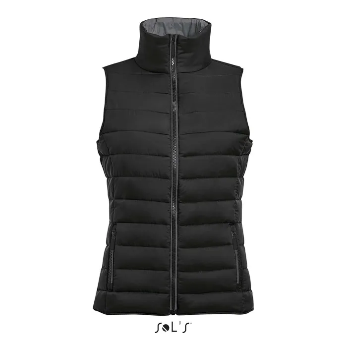 SOL'S WAVE WOMEN, WOMEN'S LIGHTWEIGHT BODYWARMER, Outside  <(>&<)> lining: 100% polyamide, Padding: 100% polyester Polyamide 380T, 2 pockets with a fancy zip that matches the lining, High collar, close-fitting cut, Tone- on-tone bias finishing at bottom. About sizes matching, please refer to the size chart in the product documentation section.