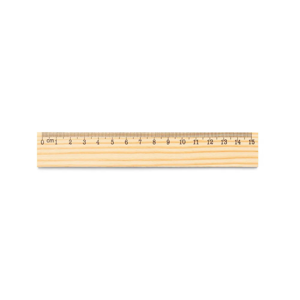 Pine wood ruler with 15 cm scale printed in black. As the product is made from natural materials, the colour and the printing result may vary between products. 158 x 25 mm
