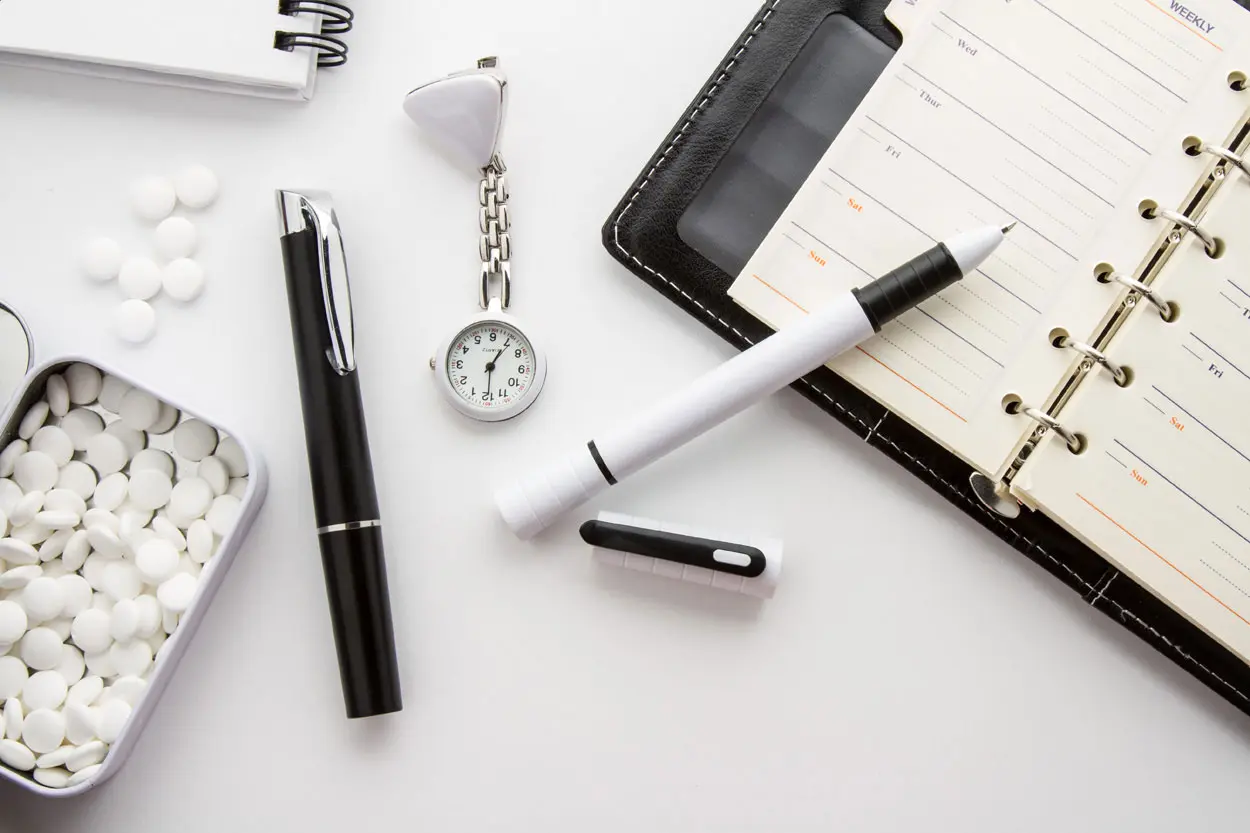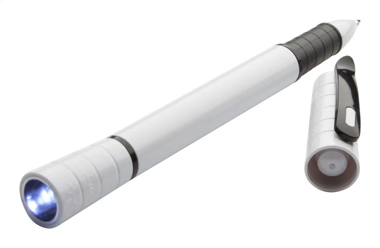 Plastična kemijska olovka s LED svjetiljkom isporučuje se s plavim punjenjem i gumbastim baterijama