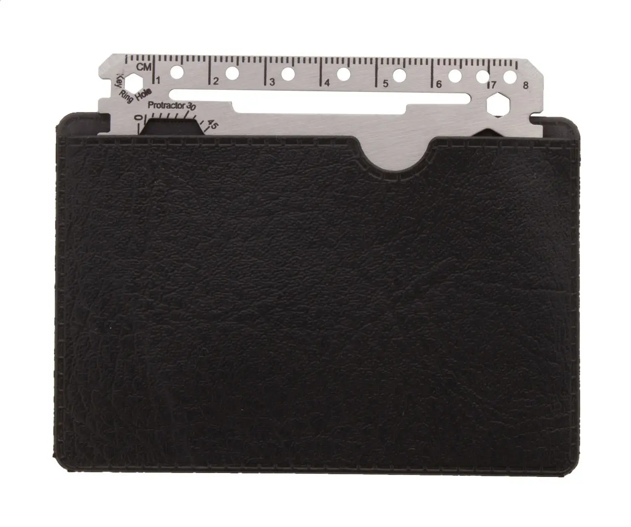 Višenamjenski alat od nehrđajućeg čelika u obliku kreditne kartice s 20 funkcija u PU kožnom etuiju