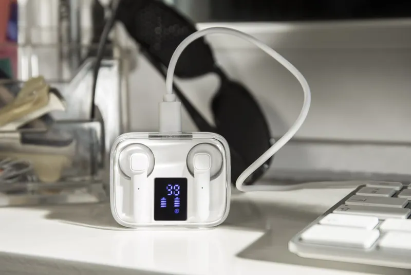 €23.39TRUVI bežične slušalice su kompaktne in-ear slušalice u kutiji koja služi i kao baterija za punjenje LED zaslon prikazuje stanje napunjenosti baterije u kutiji i svake slušalice touch upravljanje ugrađeni mikrofon omogućuje pozive može se koristiti i samo jedna slušalica Bluetooth verzija V5.1 frekvencija 2,4–2,48 GHz domet do 10 m kapacitet baterije po slušalici 30 mAh kapacitet baterije u kutiji 300 mAh rad do 3 sata vrijeme čekanja 300 sati