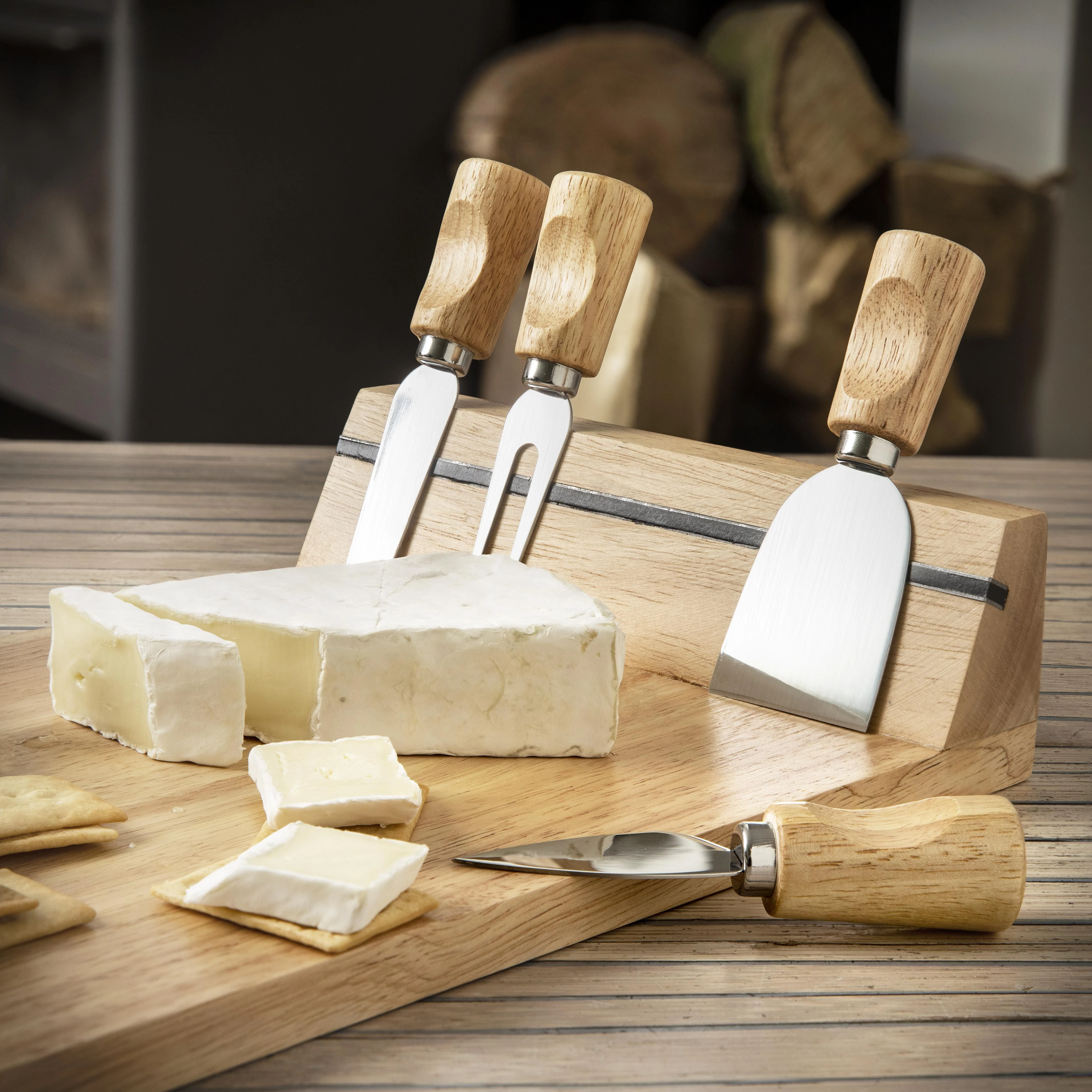 Drvena ploča za sir s magnetskom trakom i četiri dodatka od nehrđajućeg čelika.