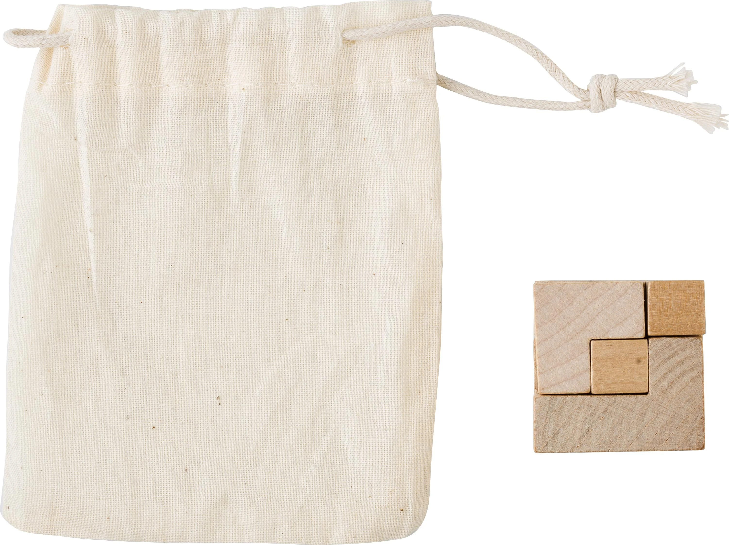 Drvena slagalica u obliku kocke, pakirana u pamučnoj vrećici