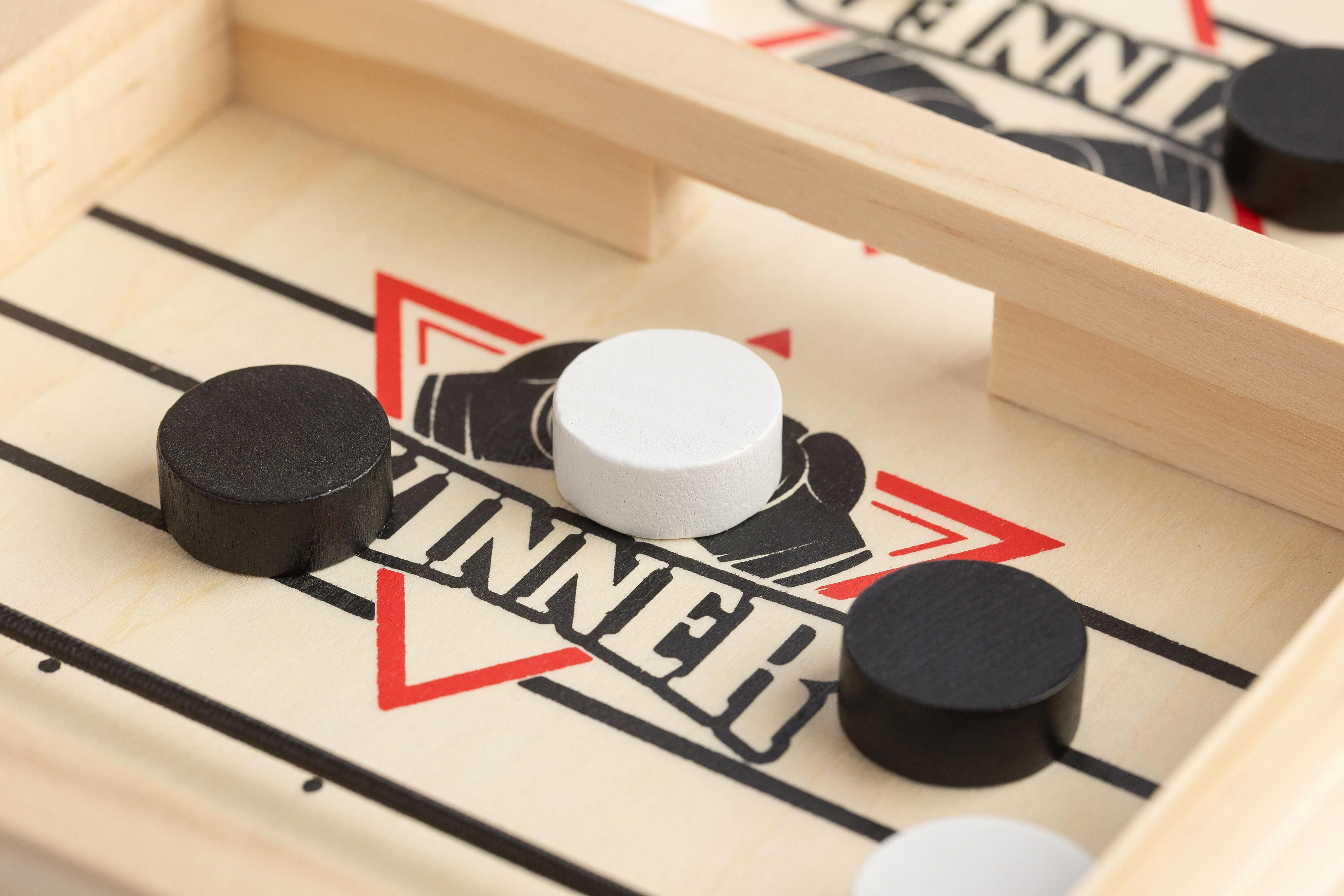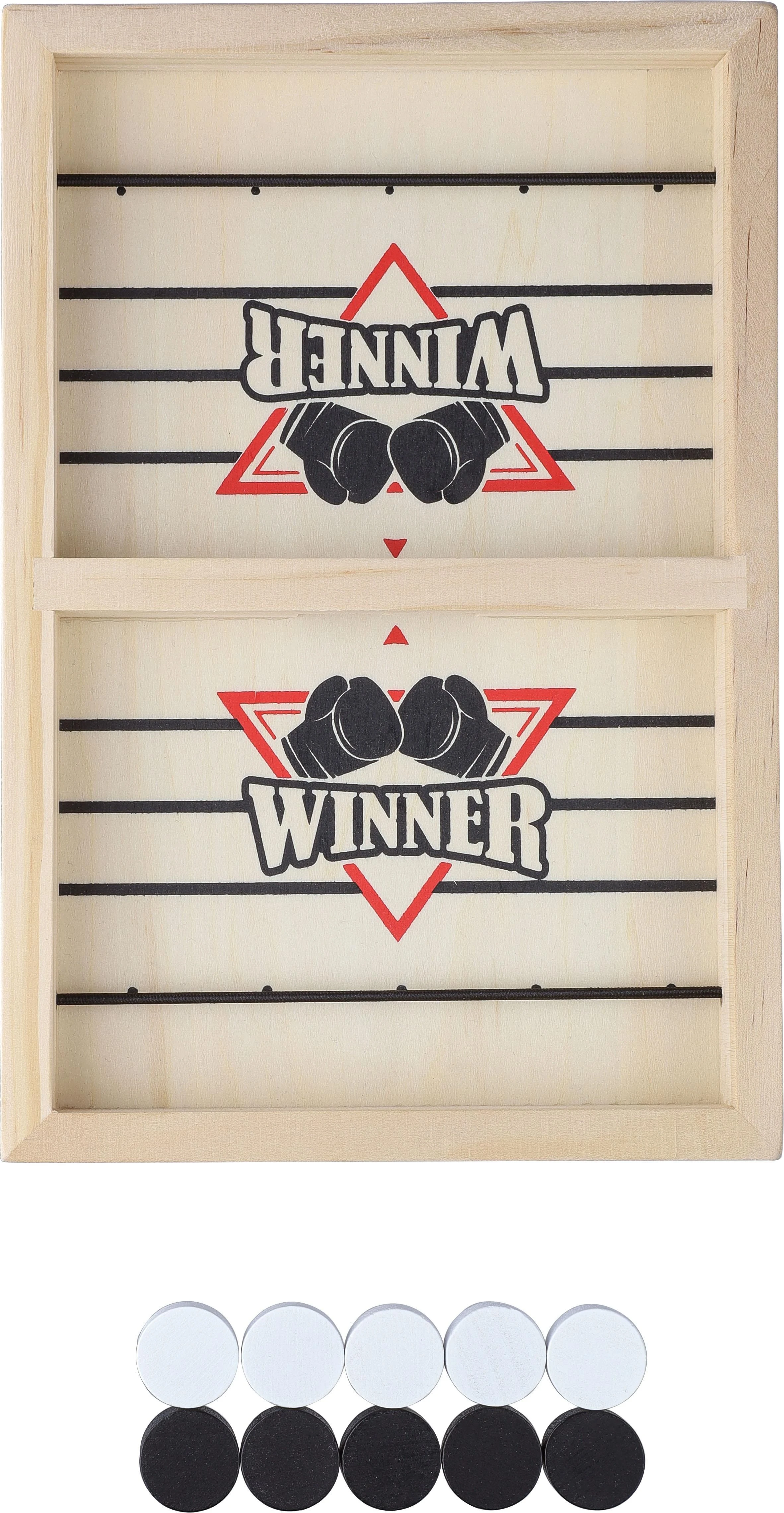 €2.53Drvena igra izbacivanja, uključuje 10 čipova za šah (5 bijelih i 5 crnih) i upute za jednostavno postavljanje i igru, ukupno 11 dijelova, pojedinačno pakirano u smeđu kartonsku kutiju s ilustriranom prednjom stranom