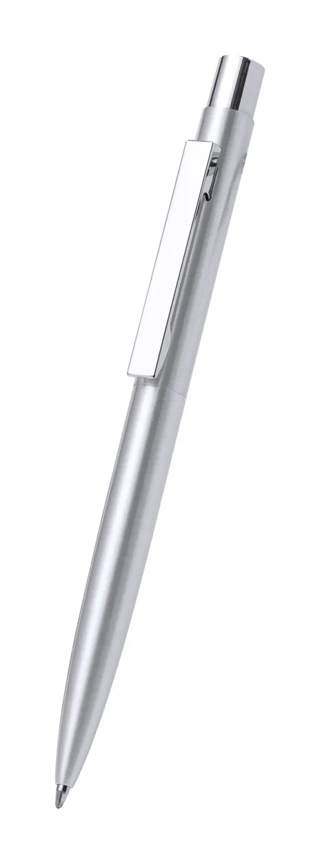 Reciklirana kemijska olovka od nehrđajućeg čelika sa srebrnom završnom obradom i kromiranim detaljima. S plavim punjenjem. U kutiji od kraft papira.