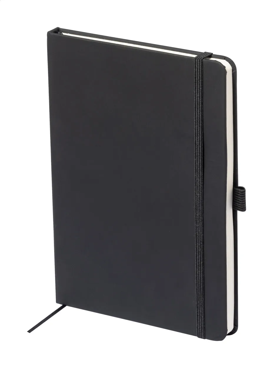 Bilježnica presvučena PU kožom s gumicom, oznakom stranice, držačem za olovku i 100 liniranih listova, A5