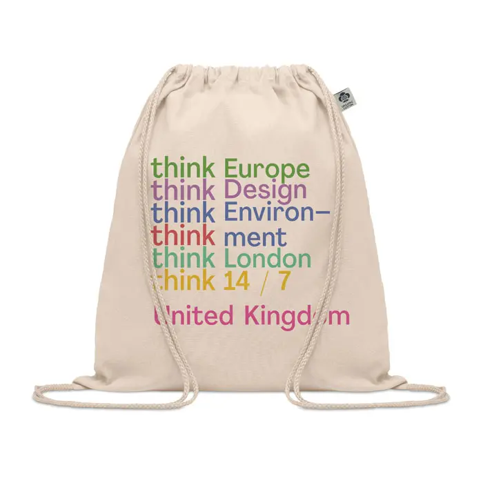 Vrećica s vezicom od organskog pamuka. 140 gr/m².