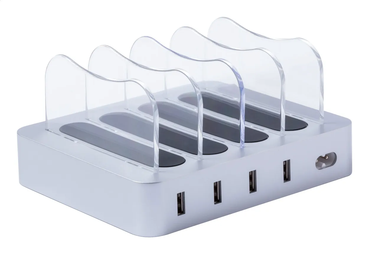 USB punjačka stanica s držačima za mobitele i 4 USB izlaza. Maksimalni izlaz: 6800 mA.