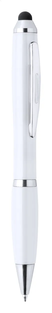Plastična kemijska olovka s obojenim tijelom i crnim stylusom za touchscreen.