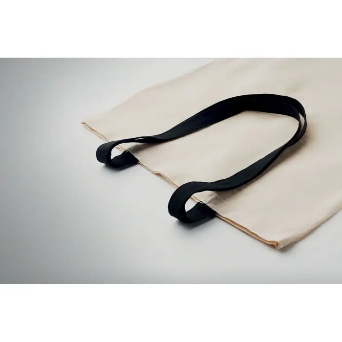 €0.73Shopping torba s dugim ručkama u boji od pamuka, 140 g/m², nosivost do 2,5 kg, dostupna s ručkama u različitim bojama, pogodna za nošenje na ramenu, certificirana prema OEKO-TEX® STANDARD 100