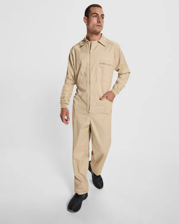 Raglan long-sleeved work overalls.· Two-way front zip.· Elasticated waistband at the back.· 1x1 ribbed cuffs.· Left chest pocket with zip.· Side patch pockets.· Outer Roly WRK label.