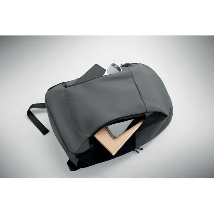 €15.39Ruksak za prijenosno računalo od 15 inča izrađen od mekane PU kože s podstavljenim leđima i skrivenim glavnim pretincem na patentni zatvarač. Ima 1 prednji džep na patentni zatvarač, 2 prednja bočna džepa na patentni zatvarač i 2 elastična mrežasta bočna džepa. S unutrašnjom podstavom od 210D RPET materijala.
