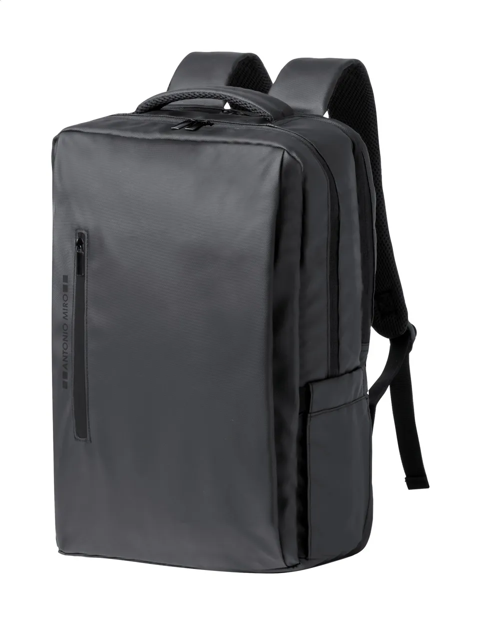 PU kožni ruksak s glavnim pretincem na patentni zatvarač, podstavljenim pretincem za laptop (15'') i tablet (10''), bočnim džepovima, podstavljenom stražnjom stranom i naramenicama, proizvod brenda Antonio Miro