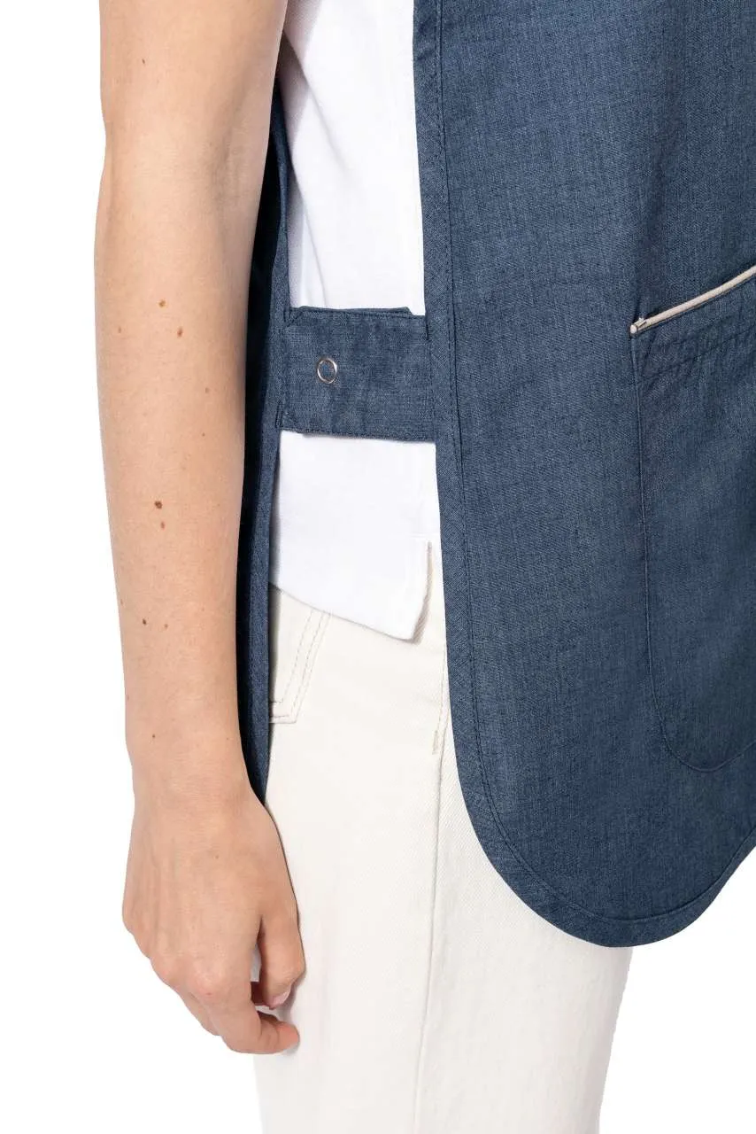 65% poliester/35% pamuk Perivo na 60°C Otporna tkanina i standardna veličina Veliki prednji džep s 2 pretinca i 1 malim unutarnjim džepom Podesive bočne trake s 2 pritisna gumba Kontrastna obruba na vrhu džepa 1 etiketa za ime unutra Zaobljeni rub Veličina L/XL duljina: 78 cm Certificirano STANDARD 100 by OEKO-TEX®N° CQ1007/8, IFTH