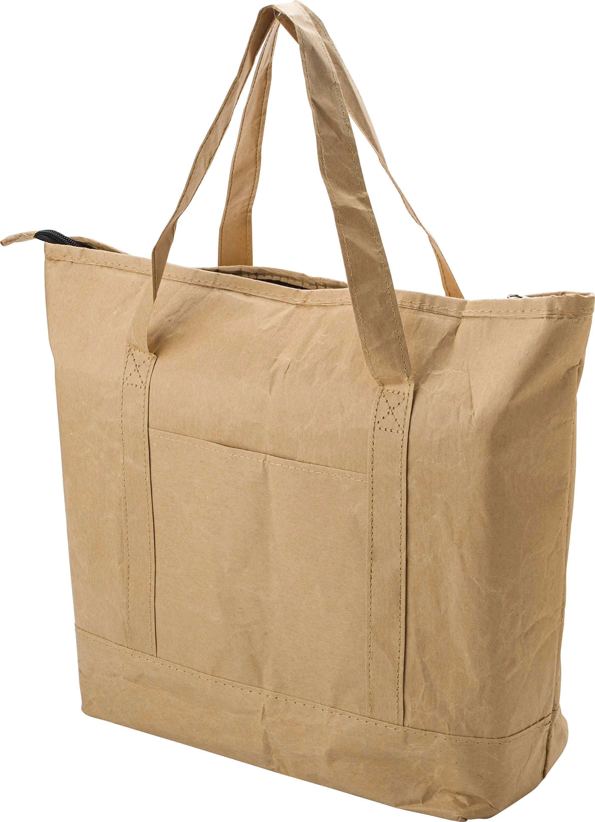 €2.80Laminated paper (80 gr/m²) shopping bag with silver colored foil interior to serve as cooling bag. The main compartment has a zipper and the bag has a pouch on one side.