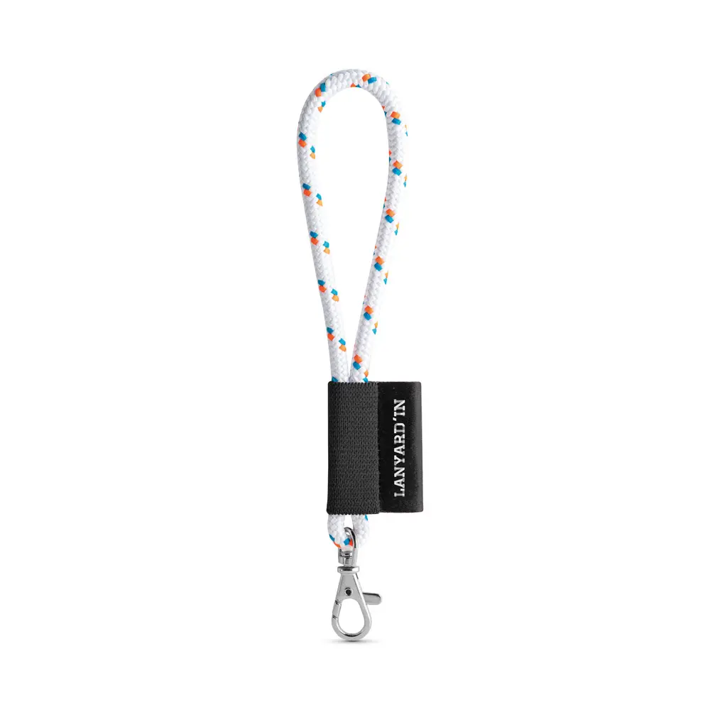 Personalizirani kratki lanyard nautic od poliestera s 11 standardnih boja za personalizaciju, uključuje crnu elastičnu vezicu, sublimacijsku etiketu 43 x 15 mm i malu karabiner kuku 9 mm, cijena uključuje sublimaciju na etiketi, dimenzije: ø7 x 150 mm