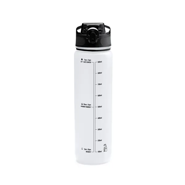 Translucent PCTG bottle, cap with drinking spout and matching carry handle. Motivational time markings and capacity indicator. Capacity: 1 L. Presentation in design box.