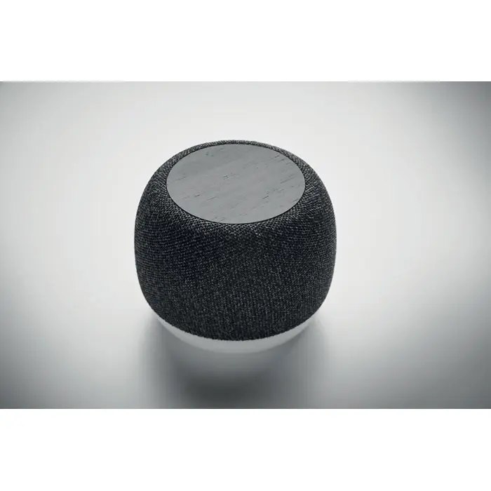 €12.445.0 bežični zvučnik i 15W bežično punjenje u ABS-u i RPET tkanini s detaljem od bambusa s crnim premazom na vrhu i bazom s ambijentalnim svjetlom, uključena punjiva Li-ION baterija 1200 mAh, uključuje SD utor i AUX/USB kabel, izlaz: 5W, 3 Ohm, 5V, vrijeme reprodukcije