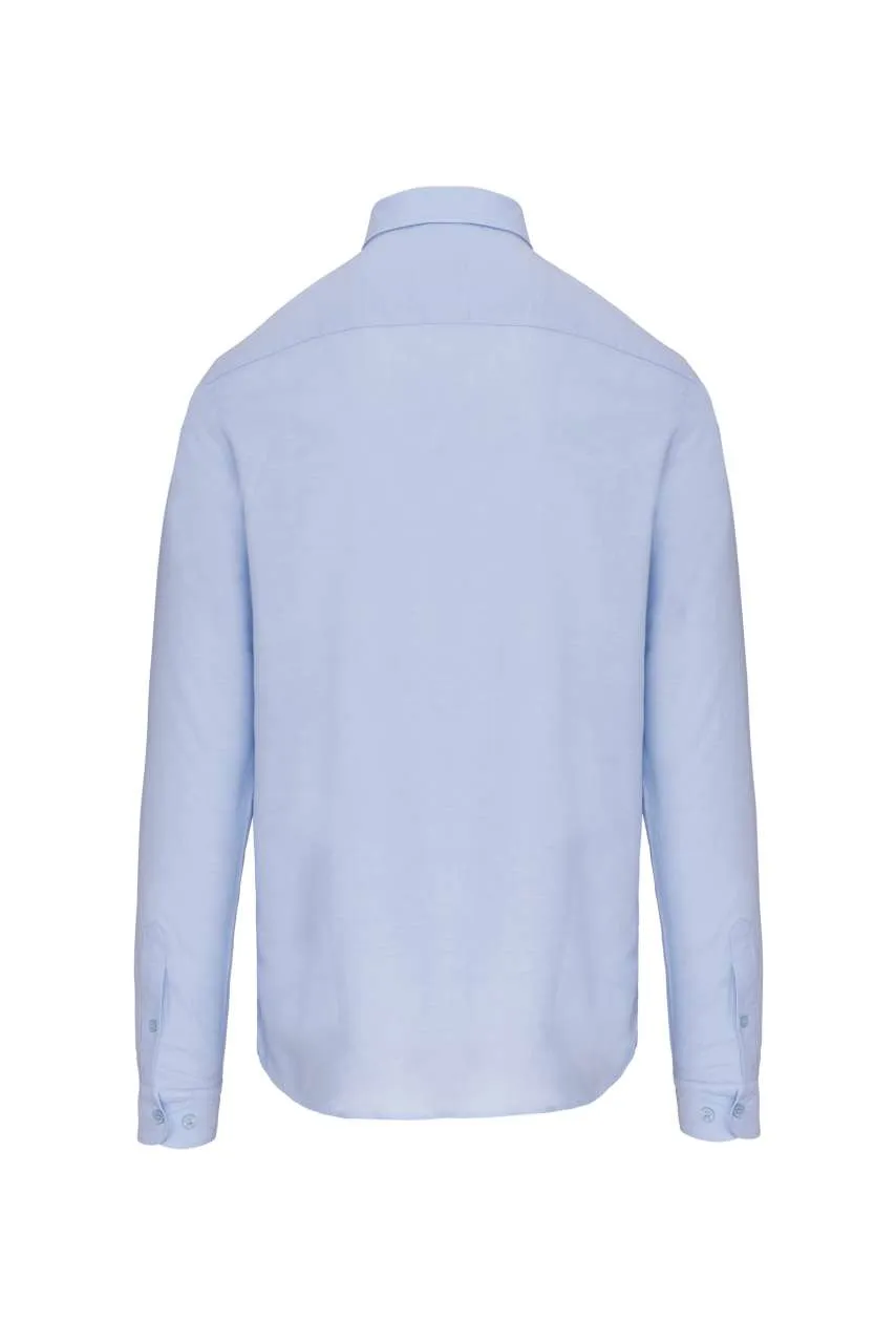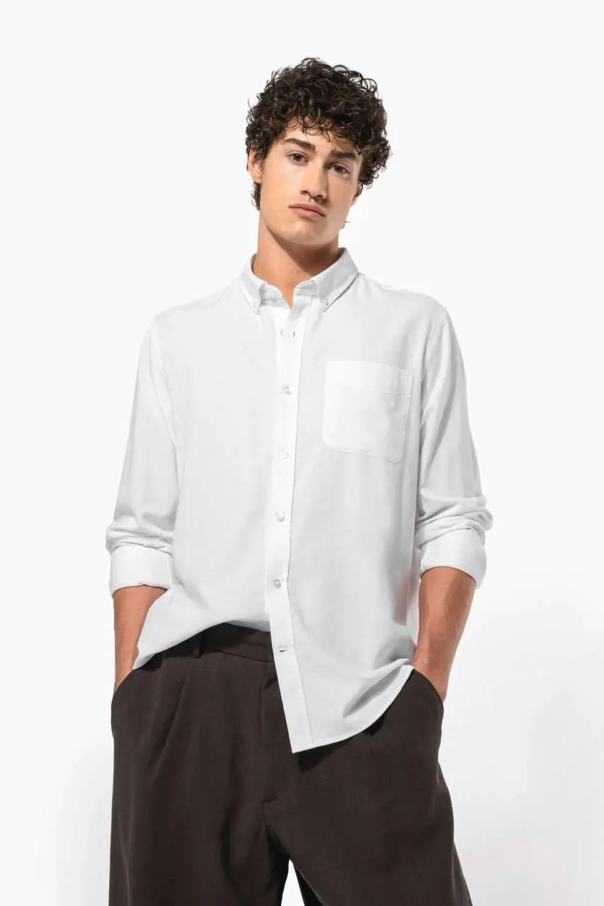 100% pamuk Prilagođeni stil Košulja s gumbima Kontrastna unutrašnjost ovratnika i manšeta Gumbi u boji košulje Zaobljeni džep na lijevoj strani prsa Dvostruki stražnji dio košulje Podesive zaobljene manšete s gumbima i klipom 2 rezervna gumba Oblikovan rub Certificirano STANDARD 100 od OEKO-TEX®N° CQ1007/8, IFTH
