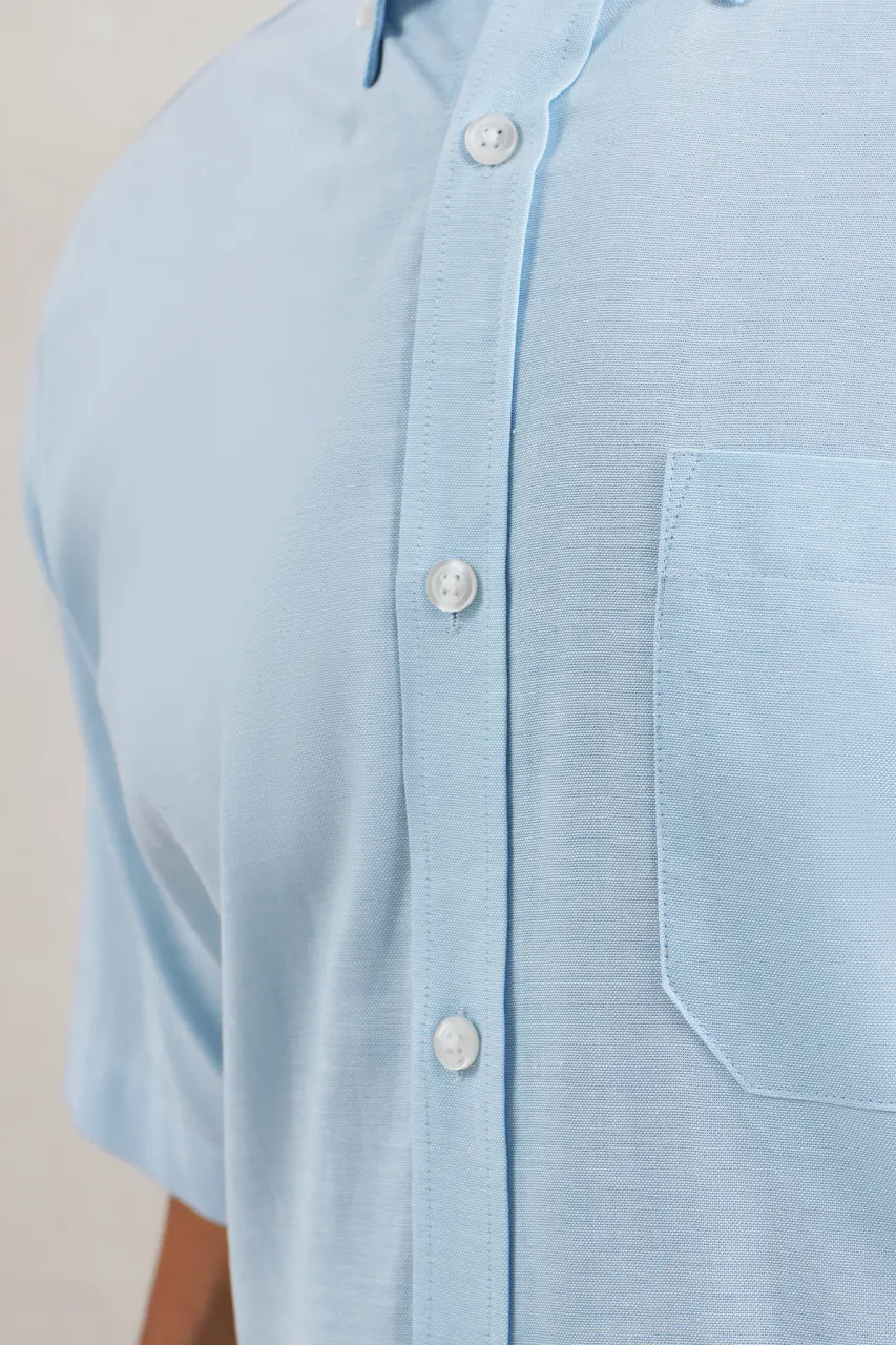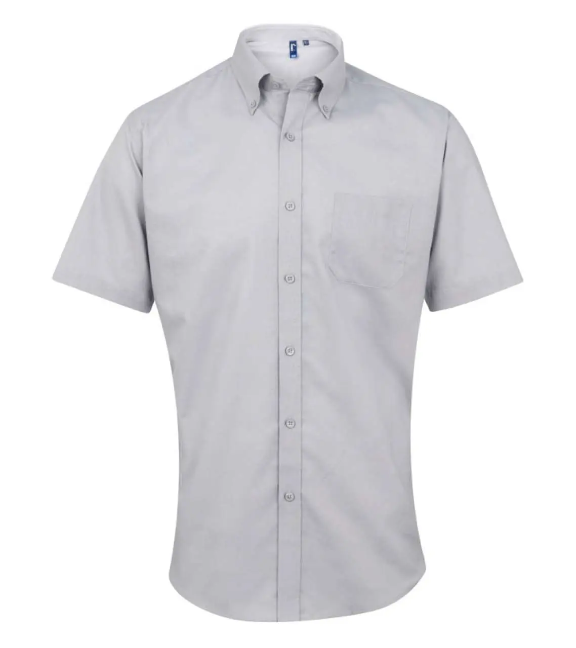 Fabric 70% Cotton, 30% Polyester Oxford Weave 135gsm Features Button-down collar Left breast open mitered pocket Short sleeves Back pleats Modern fit Easy care
