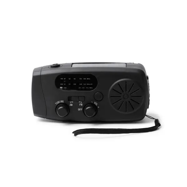 €18.24Multifunction emergency radio with dynamo, made from ABS. Its dynamo mechanism and its solar panel provide safety, as these mechanisms allow it to operate without electricity in emergency situations. Features an LED torch and SOS siren for the most demanding conditions, as well as an antenna for radio use. Features a 2 W speaker and also incorporates a 2,000 mAh power bank, a USB input port and a Type C output. Presentation in design box.