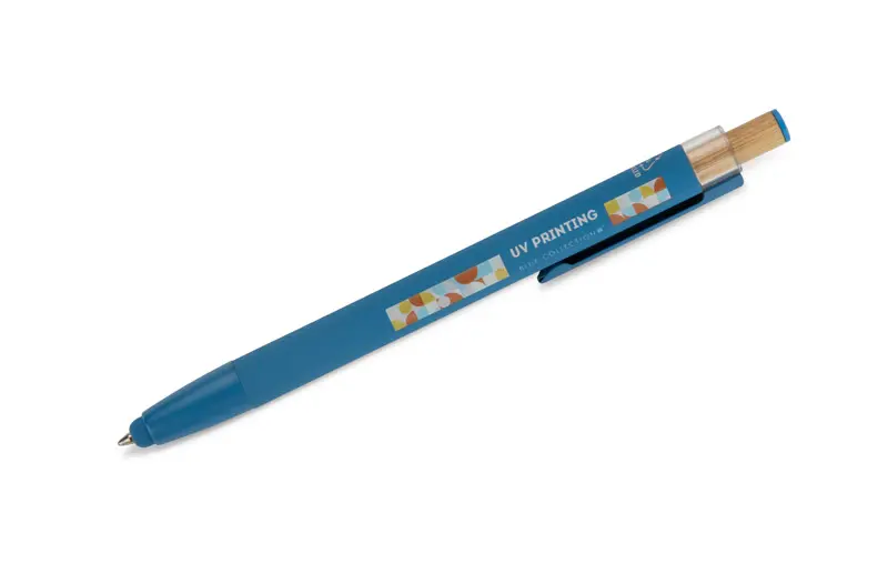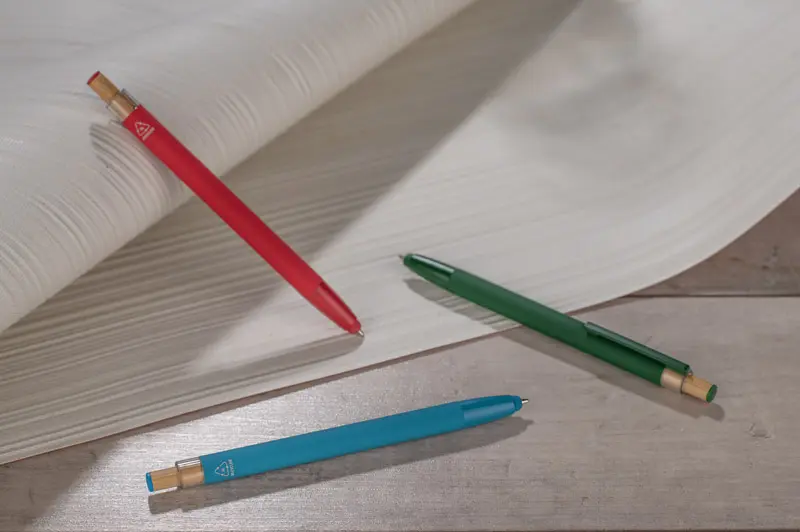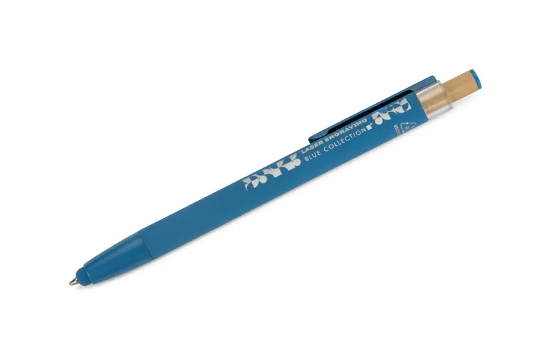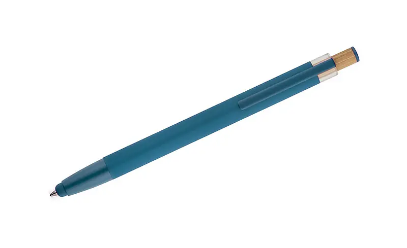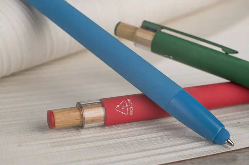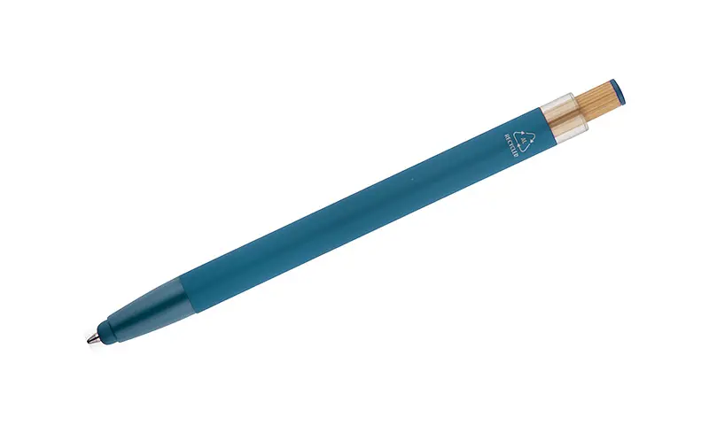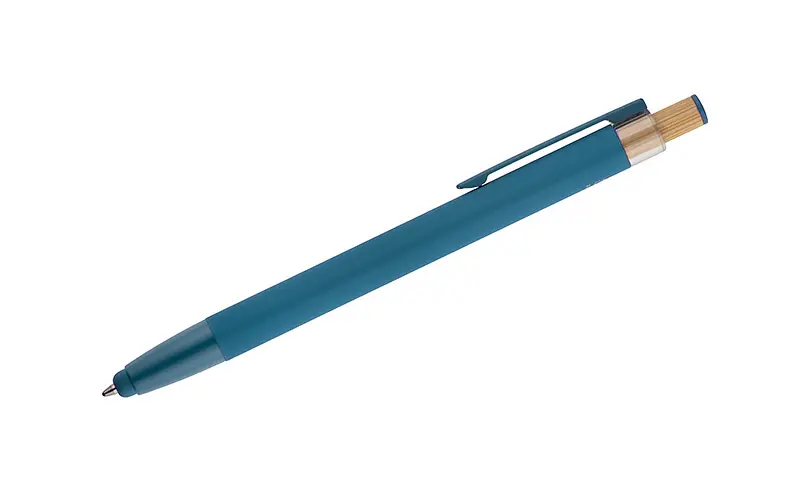 The ALPEN ballpoint pen combines modern design and writing comfort. Made from recycled aluminium with a soft touch rubberised finish, it ensures comfortable use every day. It features a touch pen function for touch screens and a metal clip for easy attachment to a notebook or pocket. The distinctive bamboo button adds a natural touch and the colourful details enhance its modern style. The G2 type nib with a line thickness of 1.0 mm guarantees smooth writing and high durability.