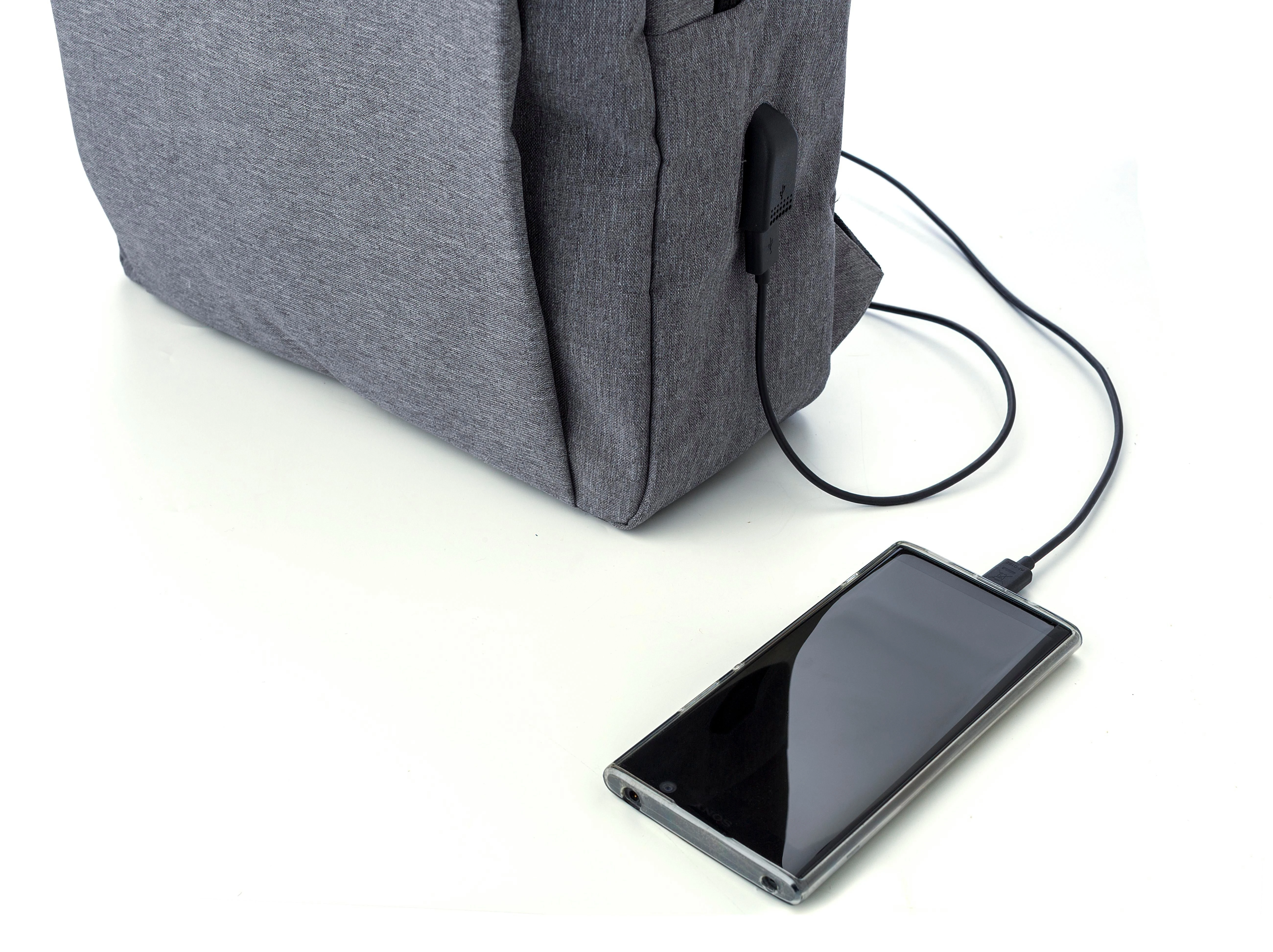 €10.28Ruksak od poliestera (600D) s glavnim pretincem na patentni zatvarač i prednjim džepom, USB izlaz sa strane, podesive podstavljene naramenice