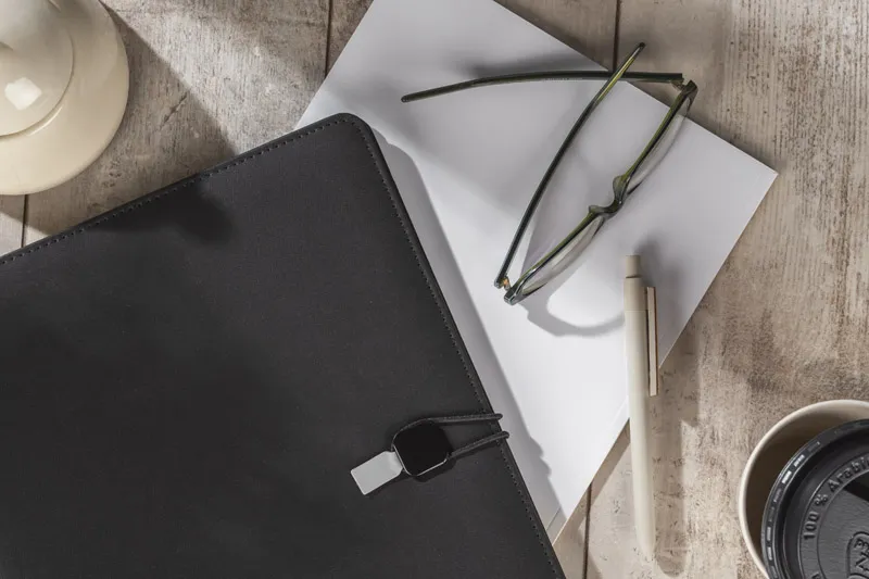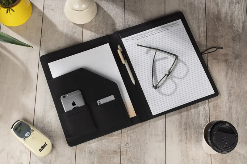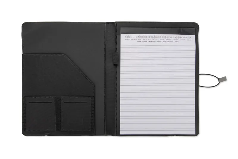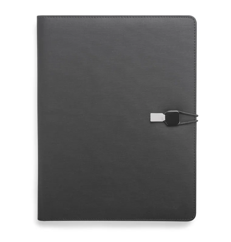 €17.06TELLA konferencijska mapa zatvara se elastičnom trakom s završetkom od materijala nalik na kožu (PU) u sivoj boji sadrži jedan džep za dokumente dva manja džepa prostor za olovku i posjetnice te zamjenjivu bilježnicu formata A4