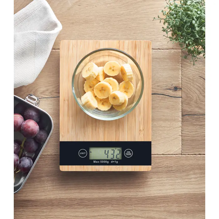 €8.66Digitalna kuhinjska vaga od bambusa za mjerenje sastojaka i hrane po težini, maksimalni kapacitet 5 kg, ne uključuje 2 AAA baterije, bambus je prirodan materijal pa su moguće manje razlike u boji i veličini, FSC® certificirano | FSC 100%, N5.7, FSC-C213206
