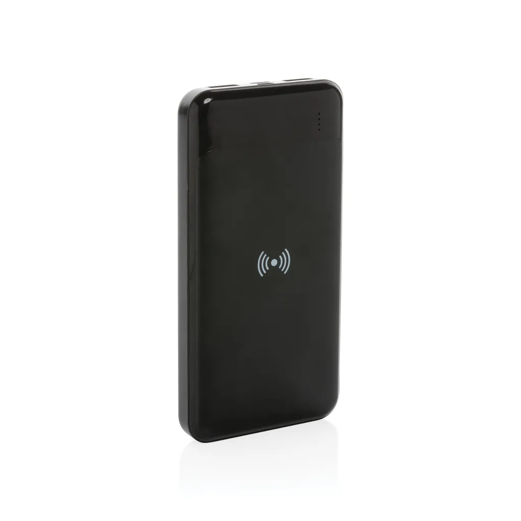 Powerbank kapaciteta 8.000 mAh s bežičnim punjačem snage 5W, kućište od RCS certificirane reciklirane ABS plastike, ukupni udio recikliranog materijala: 22% prema ukupnoj masi proizvoda, sadrži dugotrajnu A klase litij-polimersku bateriju, indikator razine napunjenosti, Type-C ulaz 5V/2A, Micro USB ulaz 5V/2A, bežični izlaz 5W, 2x USB izlaz 5V/2A, proizvod i dodaci bez PVC-a, uključuje kabel za punjenje od recikliranog TPE materijala bez PVC-a