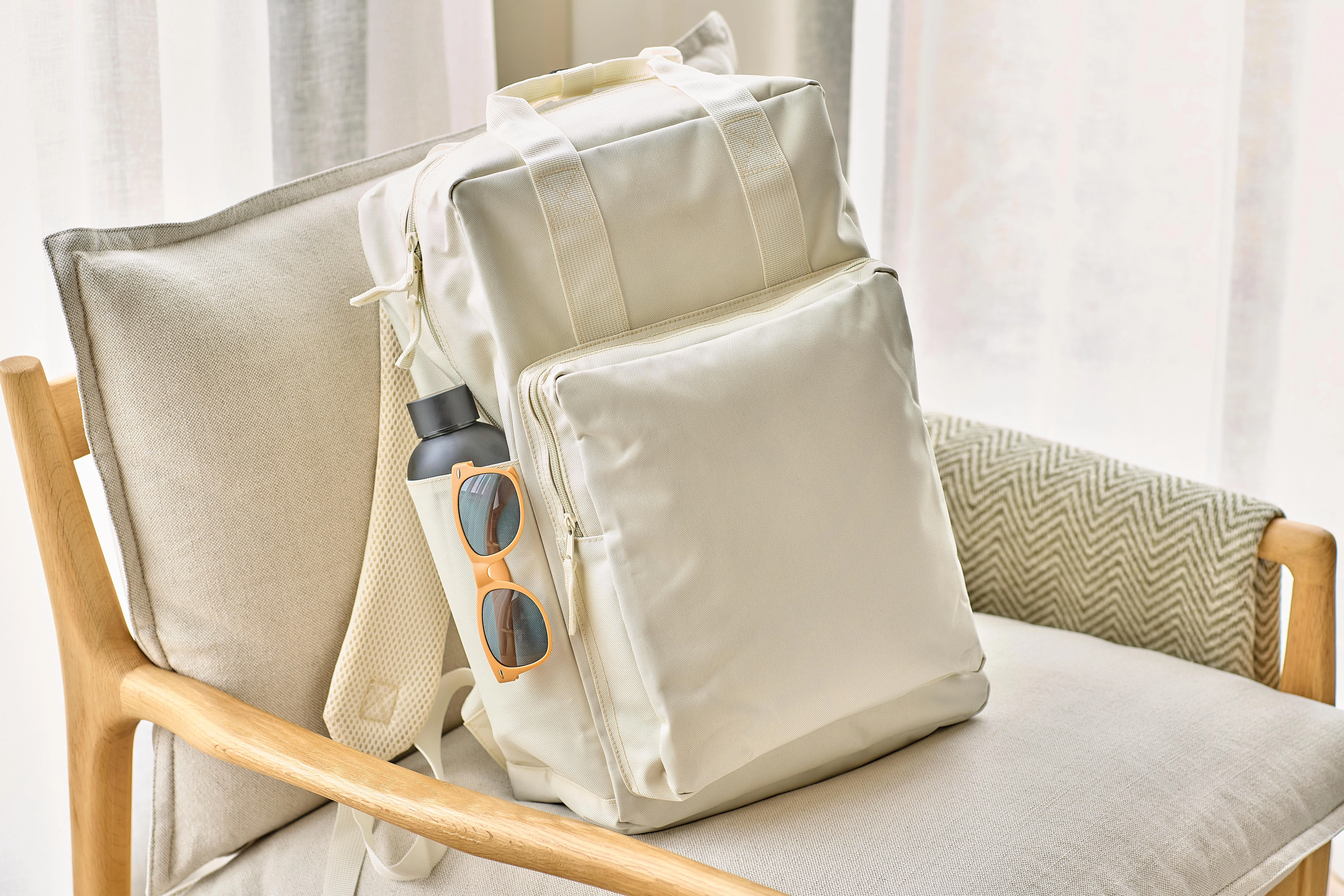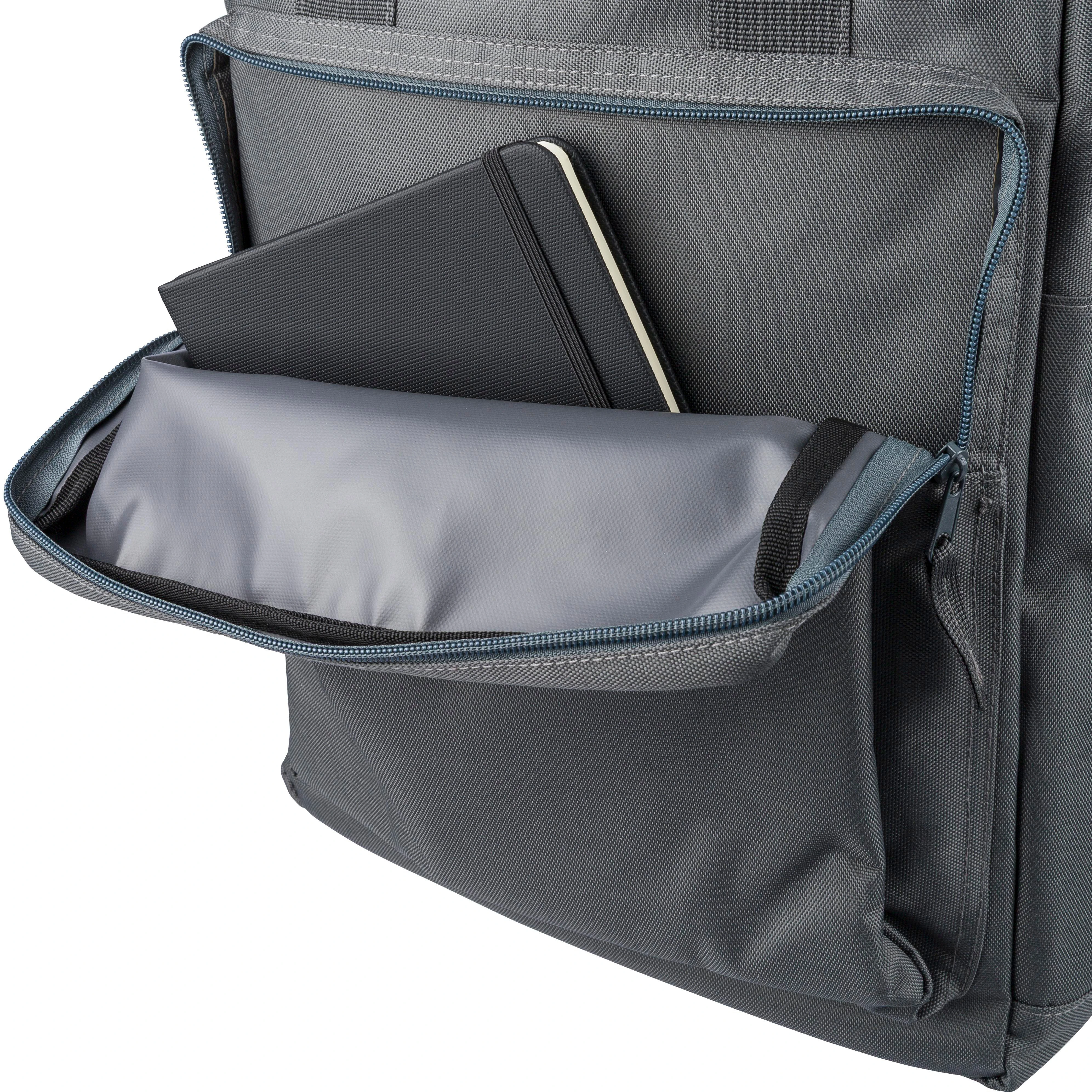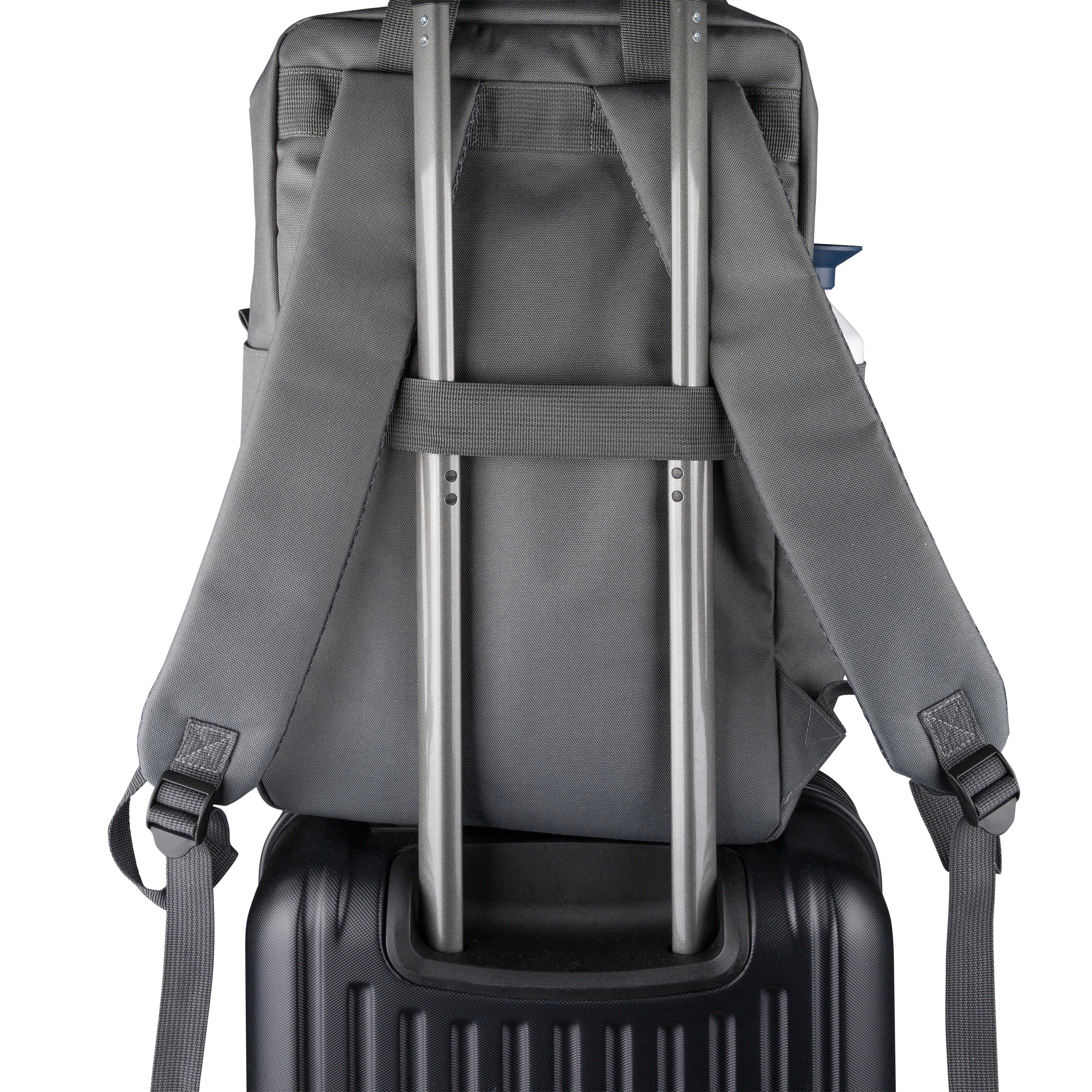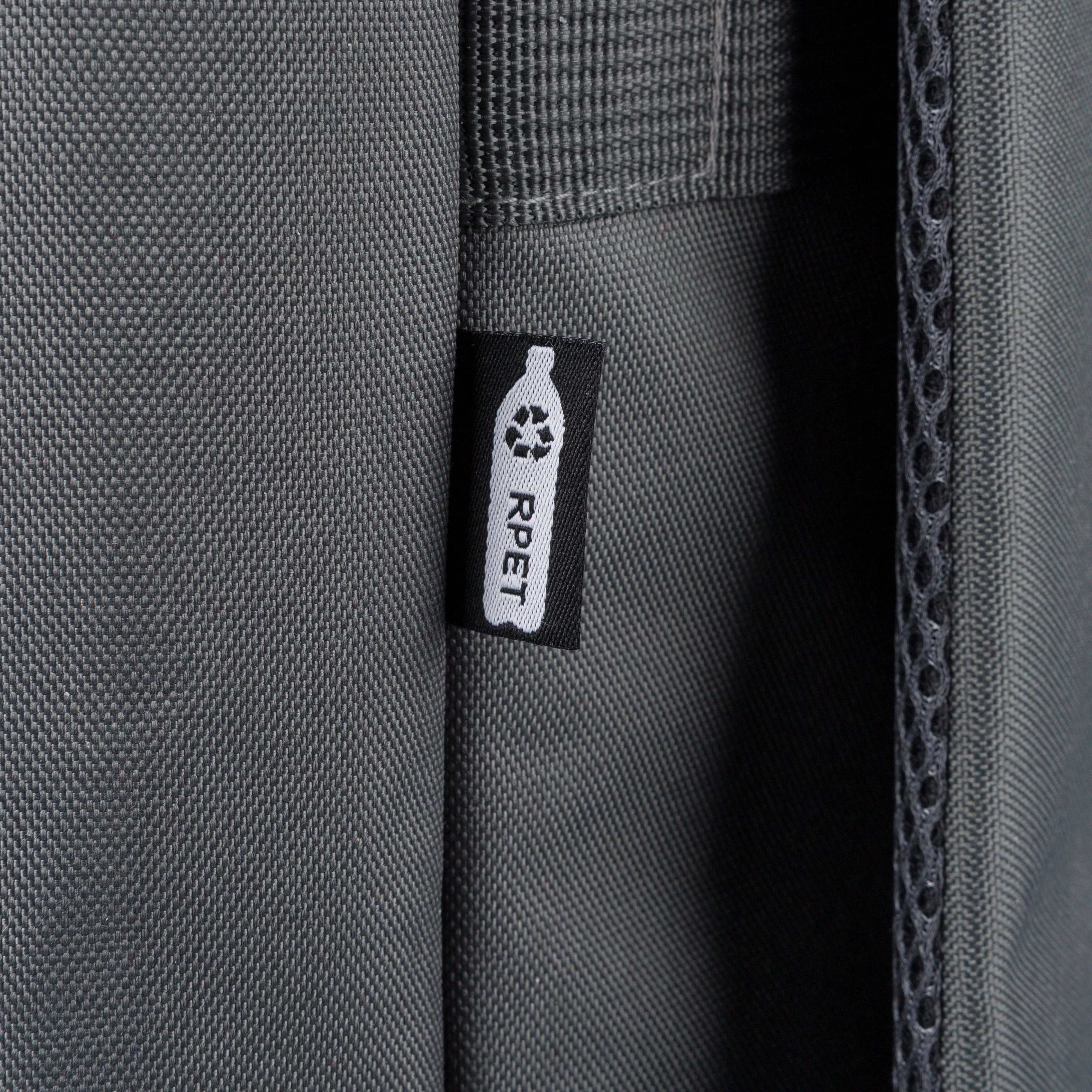 €18.24Ruksak od recikliranog poliestera 900D s podstavom 210D i rPET etiketom sa strane, veliki glavni pretinac s patentnim zatvaračem i džepom za laptop do 16 inča, manji prednji pretinac s patentnim zatvaračem, dva bočna džepa i remen za pričvršćivanje na kolica, gornje ručke s kopčom na gumb i podesive, prozračne naramenice