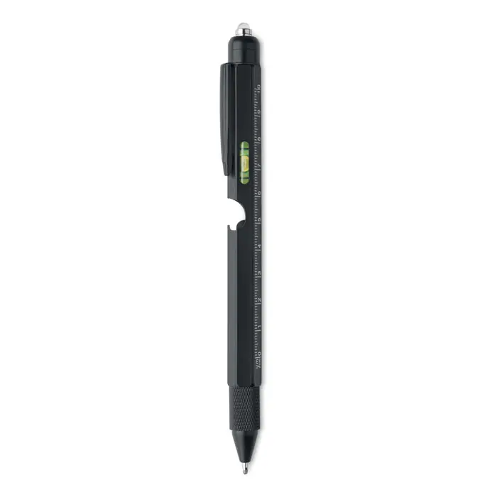 €3.85Olovka s mjeračem nagiba u nehrđajućem čeliku s okretnim mehanizmom, ima ravnalo, stylus te nastavke za Phillips i ravni odvijač, i LED svjetlo. Uključene 3 AG baterije. Plava tinta.