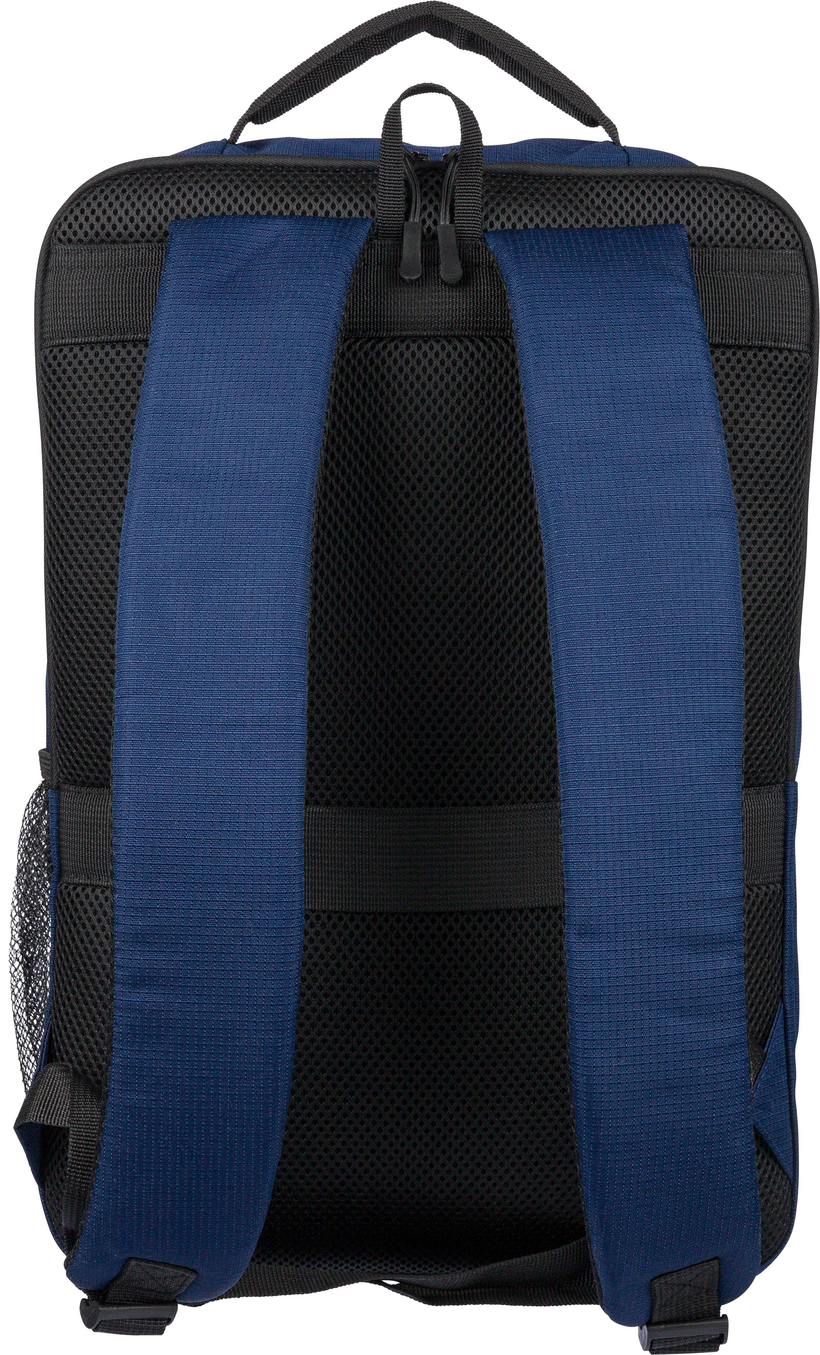 rPET 300D polyester Ocean Bound backpack made from recycled plastic waste collected from the ocean and woven into a durable fabric with a textured finish. Features a 20 liter capacity with two large zippered compartments, including a padded laptop compartment for devices up to 15 inches. Also includes two smaller zippered front pockets, one mesh side pocket, and a top loop. Designed for comfort with ventilated adjustable shoulder straps, a padded back, and a trolley strap. Includes a dedicated Ocean Bound Plastic label on the outside and an inner compliance label.